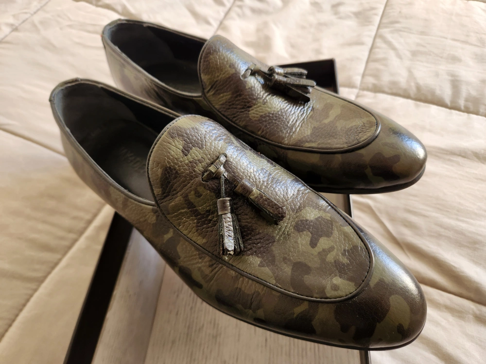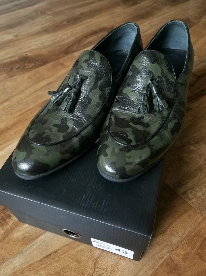 Selling a pair of JAY+DEE loafers in a cool camo pattern! They are a European size 43 (size 10 in Canada) and come with the original box.