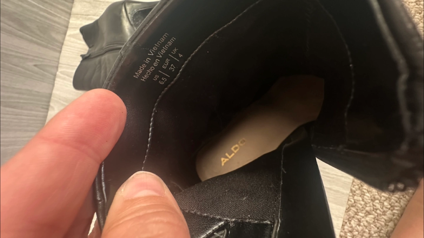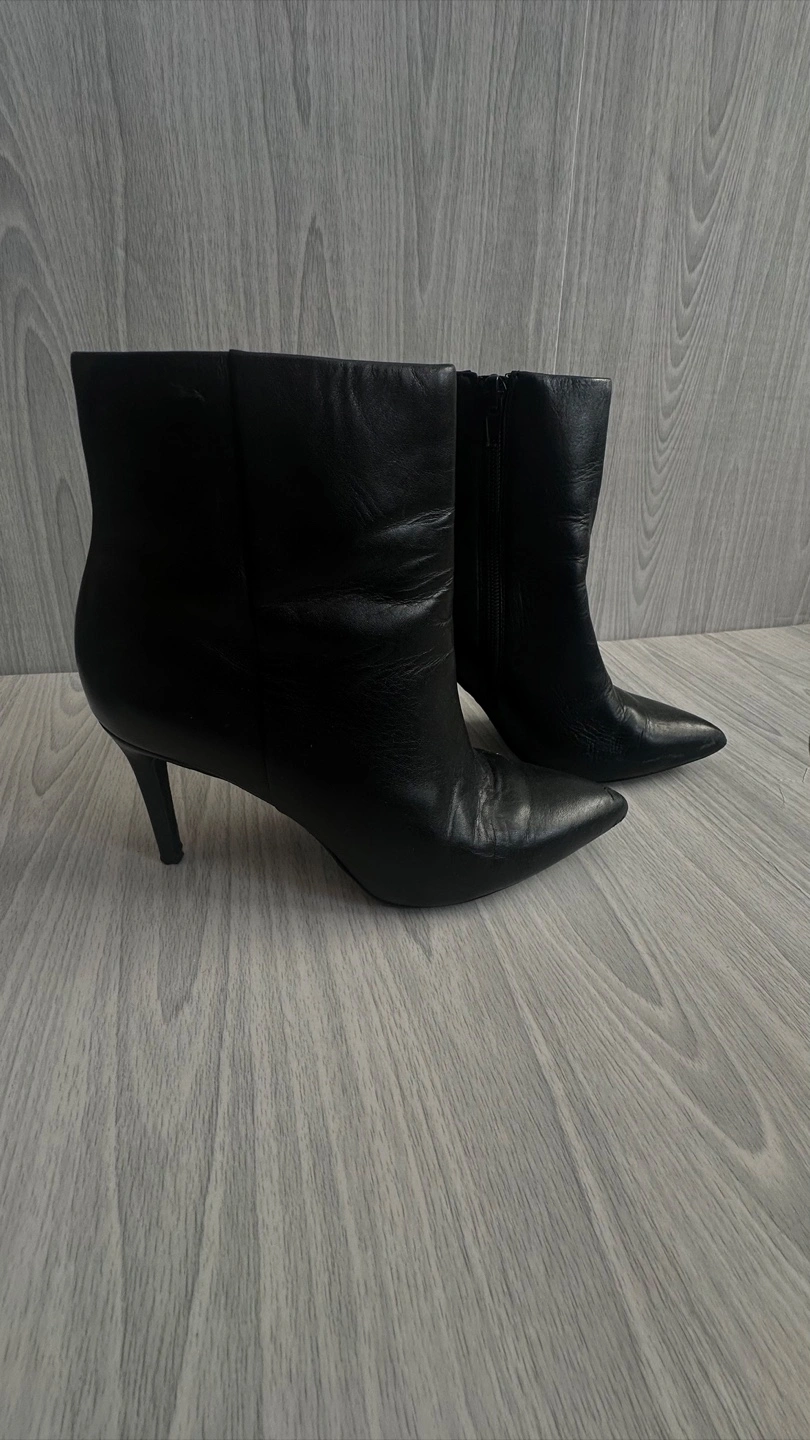 Selling a pair of black heeled boots from ALDO. They are a US size 6.5, EUR 37, and UK 4. There are some signs of wear on the soles, but otherwise in good condition!