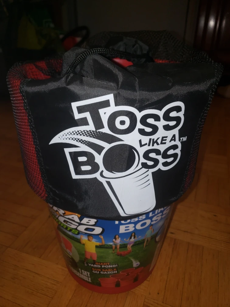 Selling a Toss Like a Boss yard pong game. It's a fun outdoor game for all ages. Includes the bucket, balls, and carrying bag
