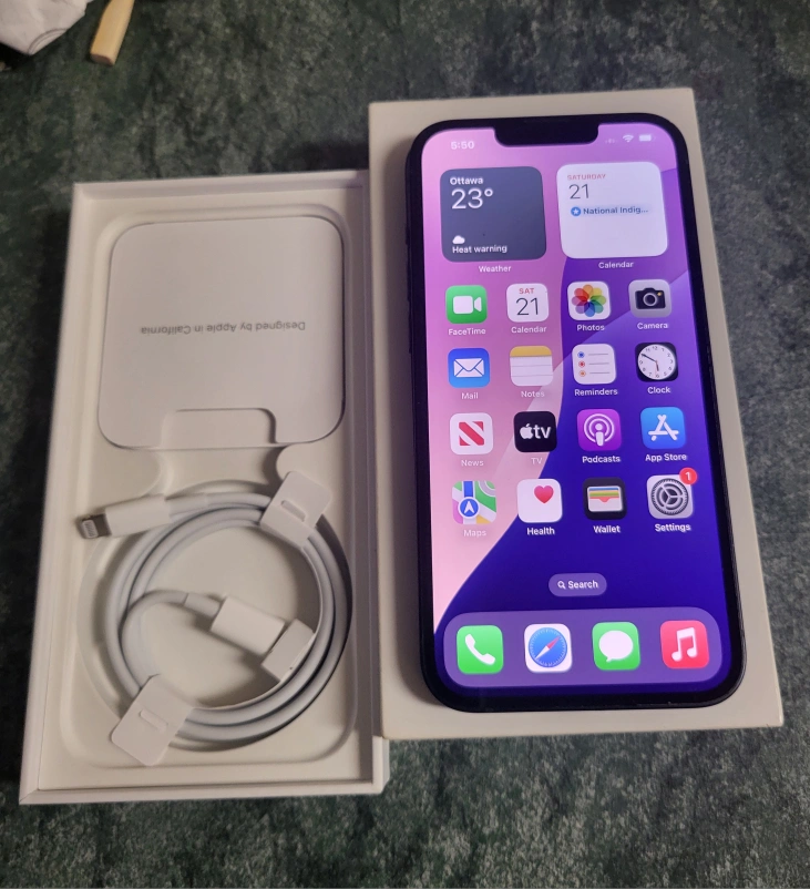 Selling an iPhone 13 in blue with 128GB of storage. It comes with its original box and a charging cable. The battery health is at 88%. pick up only and cash no dents or scratches