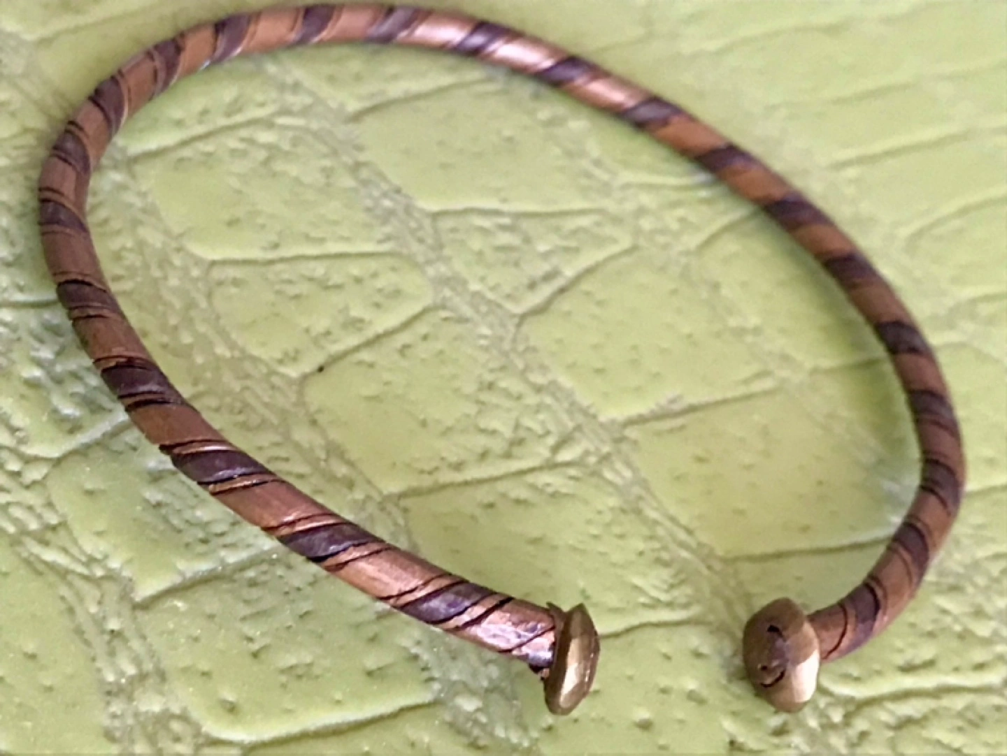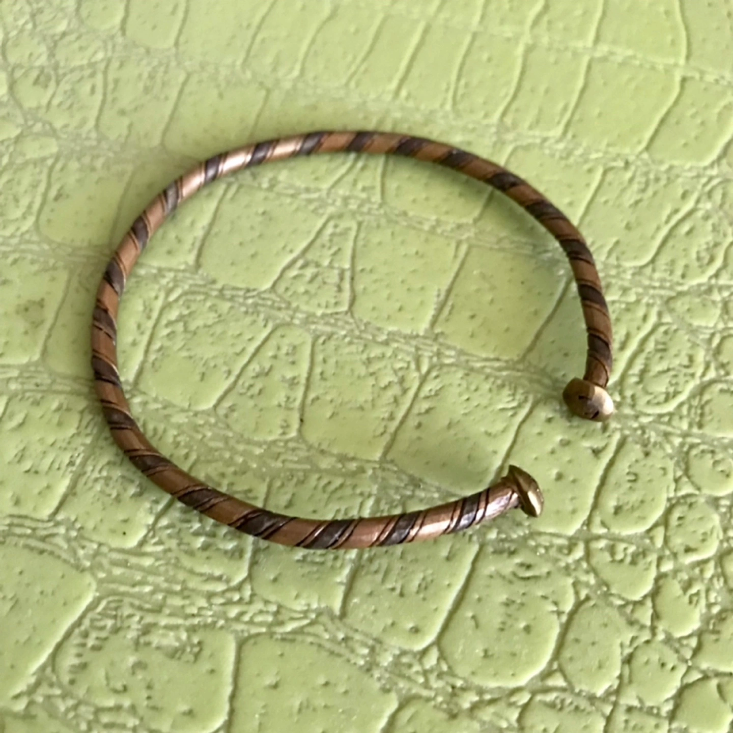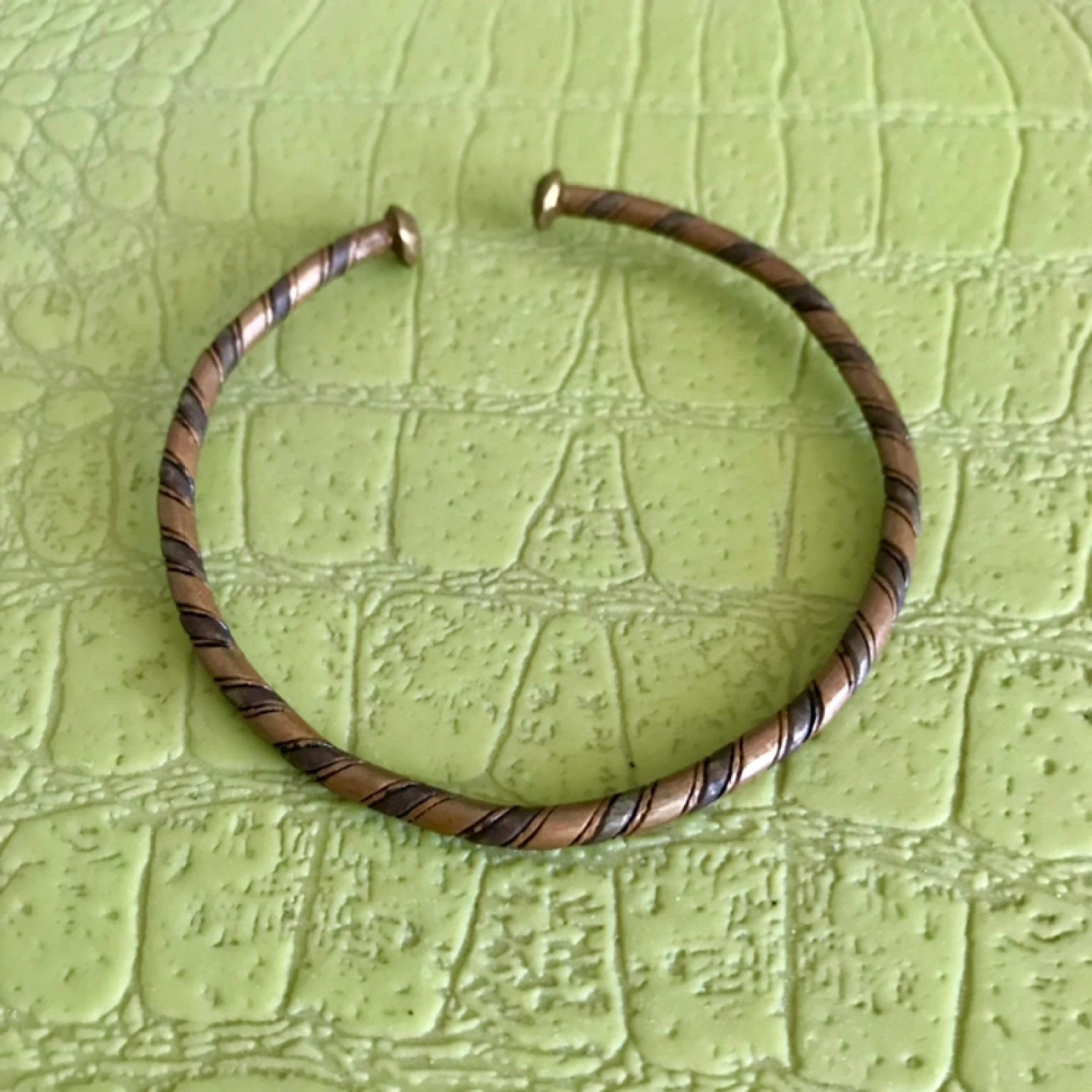 A beautiful Copper Bangle/Bracelet with an elegant wraparound design creating a contrast in detail. It has a nice weight to it. A timeless piece for both daily wear or a dressier look.