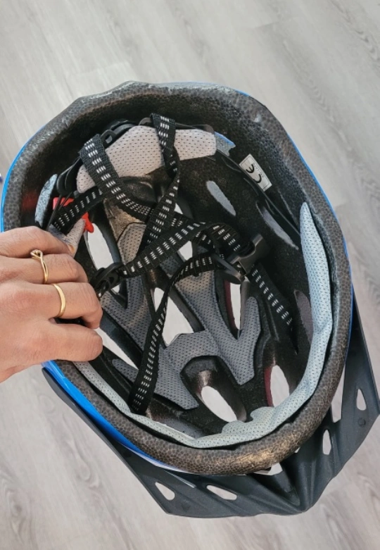 Selling a blue and black bike helmet in great condition! Perfect for biking around town or hitting the trails it is around 56 to 58cm
