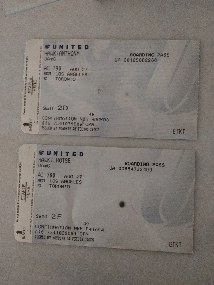 Tony Hawk Unique Collectible United Air Lines Boarding passes for Tony Hawk and his wife Lhotse, from Los Angeles to Toronto Pick Up Anytime $30 or best offer Off Marlee Avenue north of Eglinton Avenue West South of Lawrence Ave West