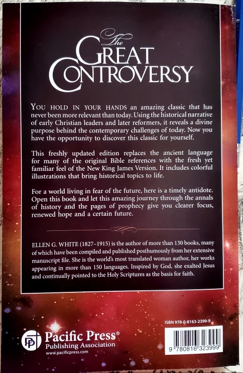 Selling a copy of 'The Great Controversy: The Epic Story of the Battle Between Christ and Satan with New King James Version'. It's the Home Library Edition. The book replaces the ancient language for many of the original Bible references with the fresh yet familiar feel of the New King James Version. great for any person interested in religious knowledge, and especially for Christians seeking to better understand the history of their religion.