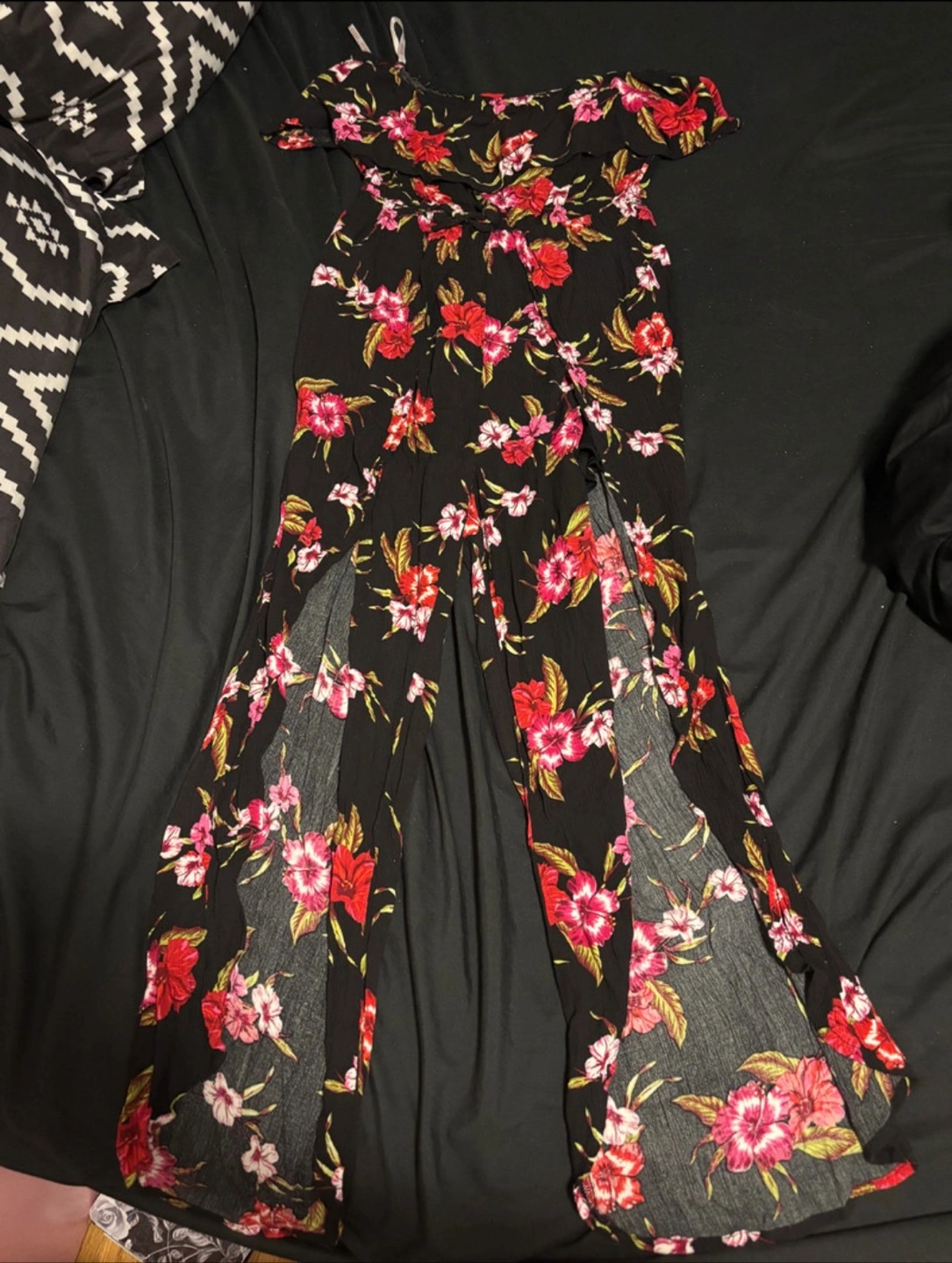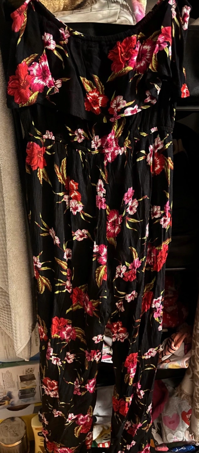 Beautiful floral jumpsuit. Has slits on the legs and shorts that line underneath. Size medium. Doesn’t fit me anymore and I only wore it once. Pick up in Mississauga