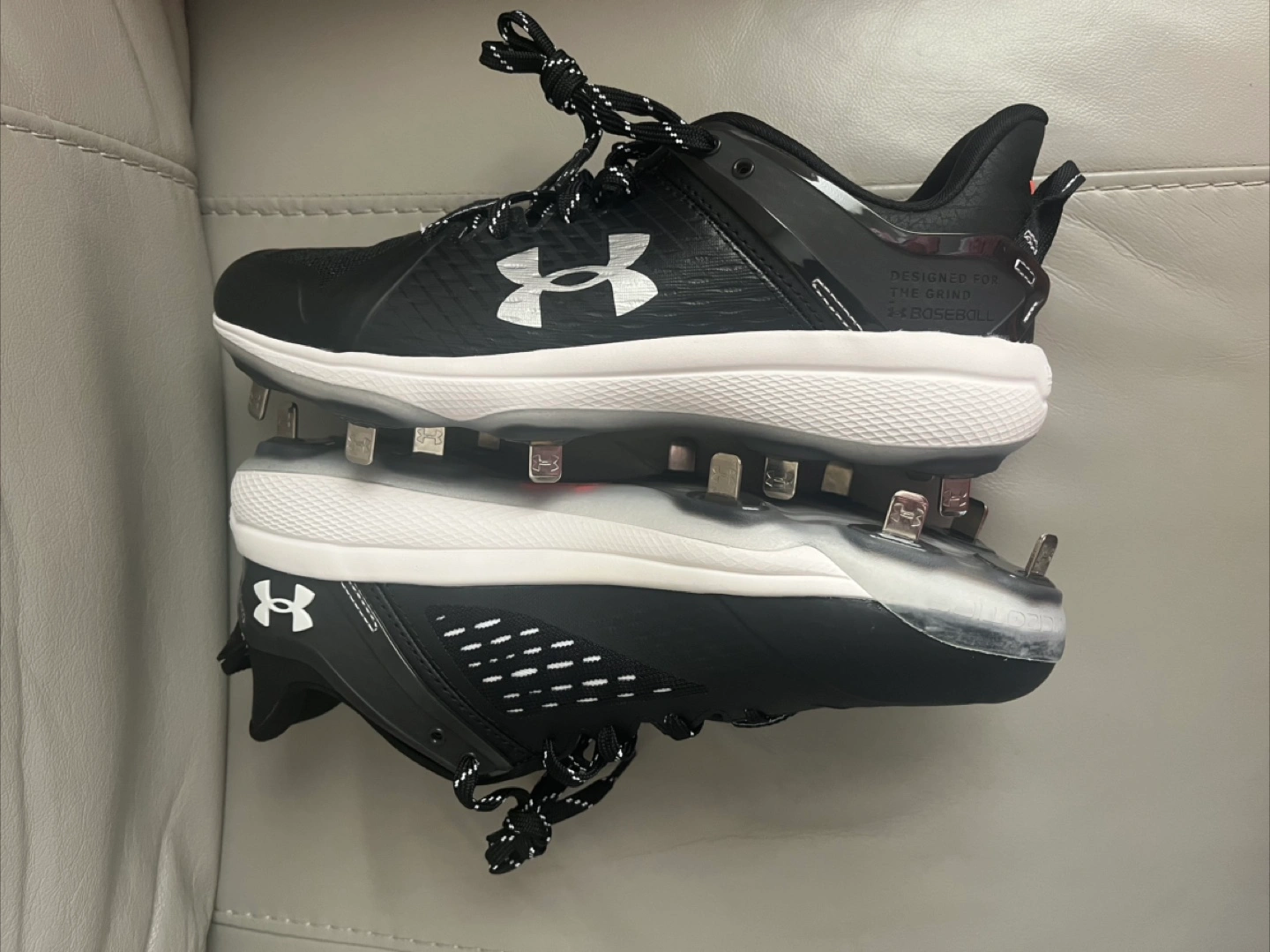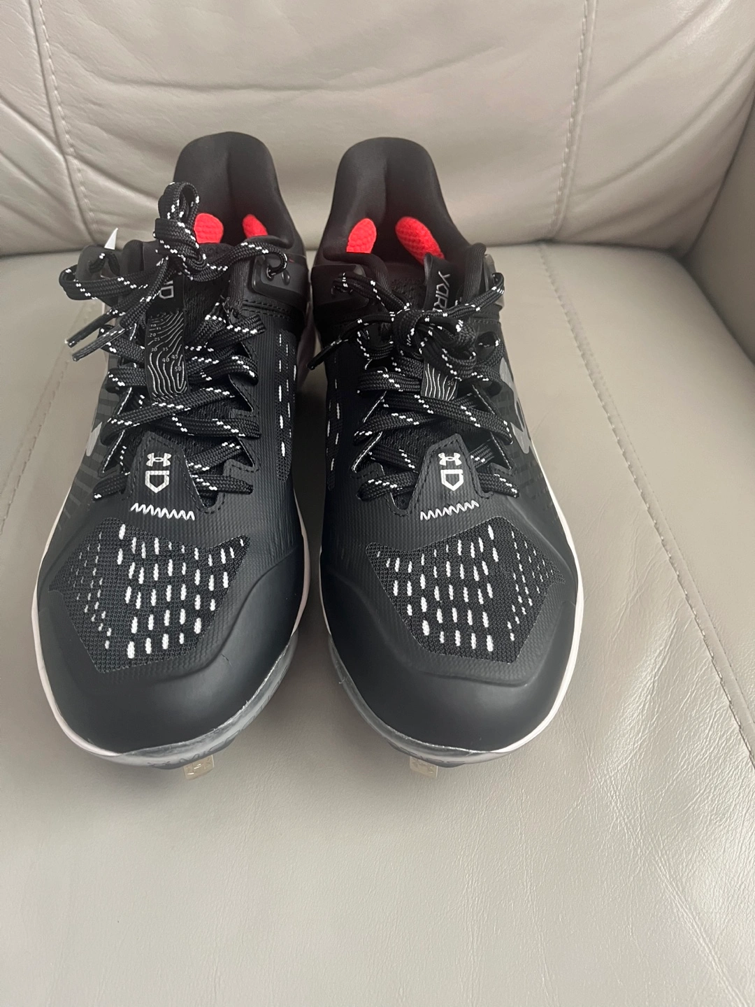 These Under Armour baseball cleats are designed for the grind! They feature Microtips traction and comfort. Perfect for hitting the field! brand new baseball cleats size 7.5 mens original under armour price is fixed plz Care instructions Machine Wash Sole material Rubber Outer material Mesh Closure type Lace-Up Country of origin China About this item Updated plush heel, engineered textile forefoot & breathable toe box make it fit & feel like a sneaker TPU cage for added stability during lateral movements Toe drag protection & strategic TPU overlays in high-abrasion areas for durability that lasts all season Molded Ortholite sockliner maintains compression set for long-lasting comfort & improved traction Charged Cushioning midsole converts impact into explosive speed & power on the diamond New UA Microtips technology provides comfort, more traction & less weight underfoot Description Updated plush heel, engineered textile forefoot & breathable toe box make it fit & feel like a sneaker. TPU cage for added stability during lateral movements. Toe drag protection & strategic TPU overlays in high-abrasion areas for durability that lasts all season. Molded Ortholite™ sockliner maintains compression set for long-lasting comfort & improved traction. Charged Cushioning® midsole converts impact into explosive speed & power on the diamond. New UA Microtips technology provides comfort, more traction & less weight underfoot. 10 strategically placed cleats on perimeter for more points of ground contact to reduce cleat pressure. Weight: 12.3 oz.. Lace type: Standard tie. . from smoke and pet free home no box