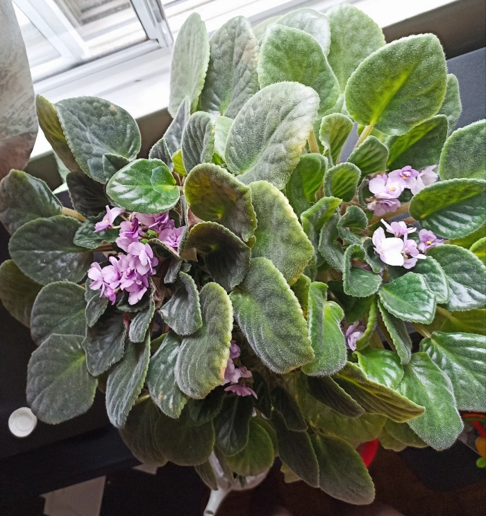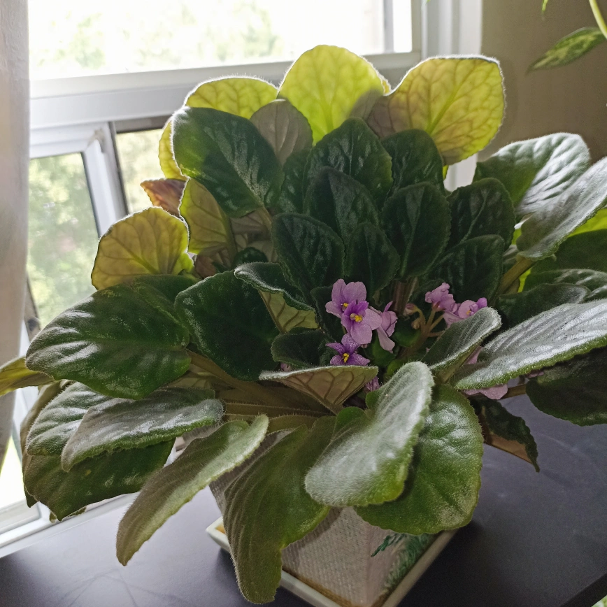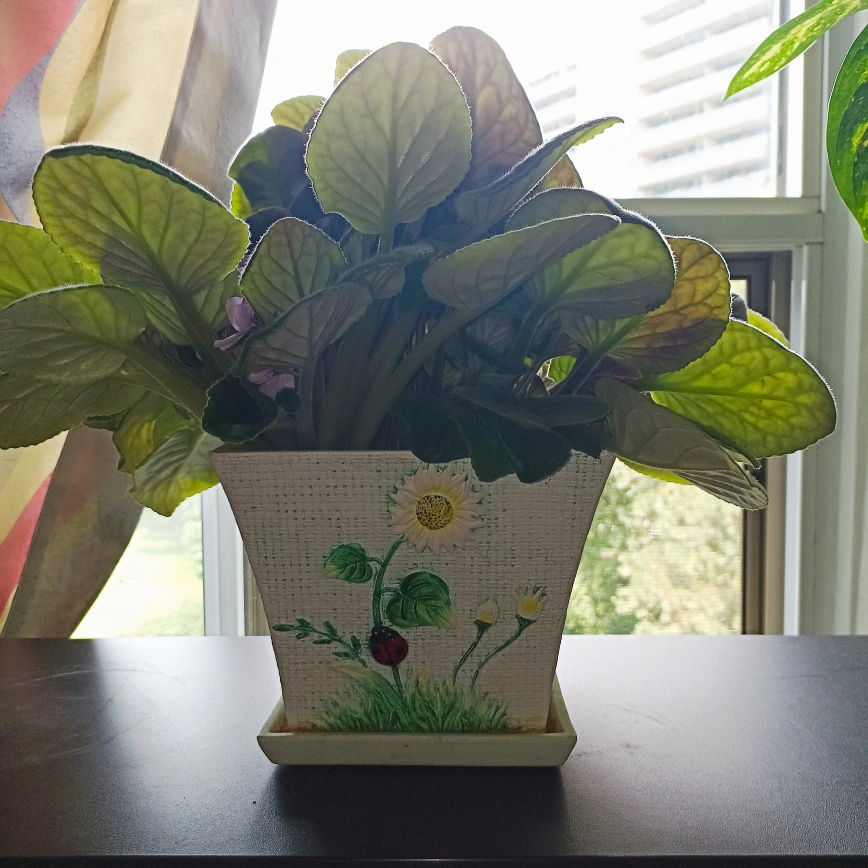 ‼️Moving Sale‼️A beautiful African Violet plant with lovely purple flowers and healthy green leaves. It comes in a decorative pot. Perfect for adding a touch of nature to your home! Healthy plant is looking for a new home💜