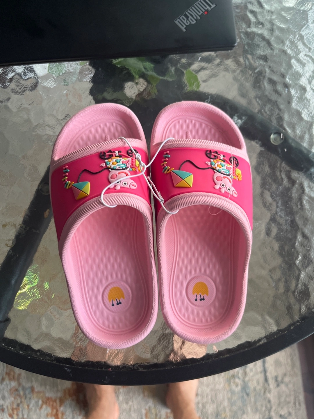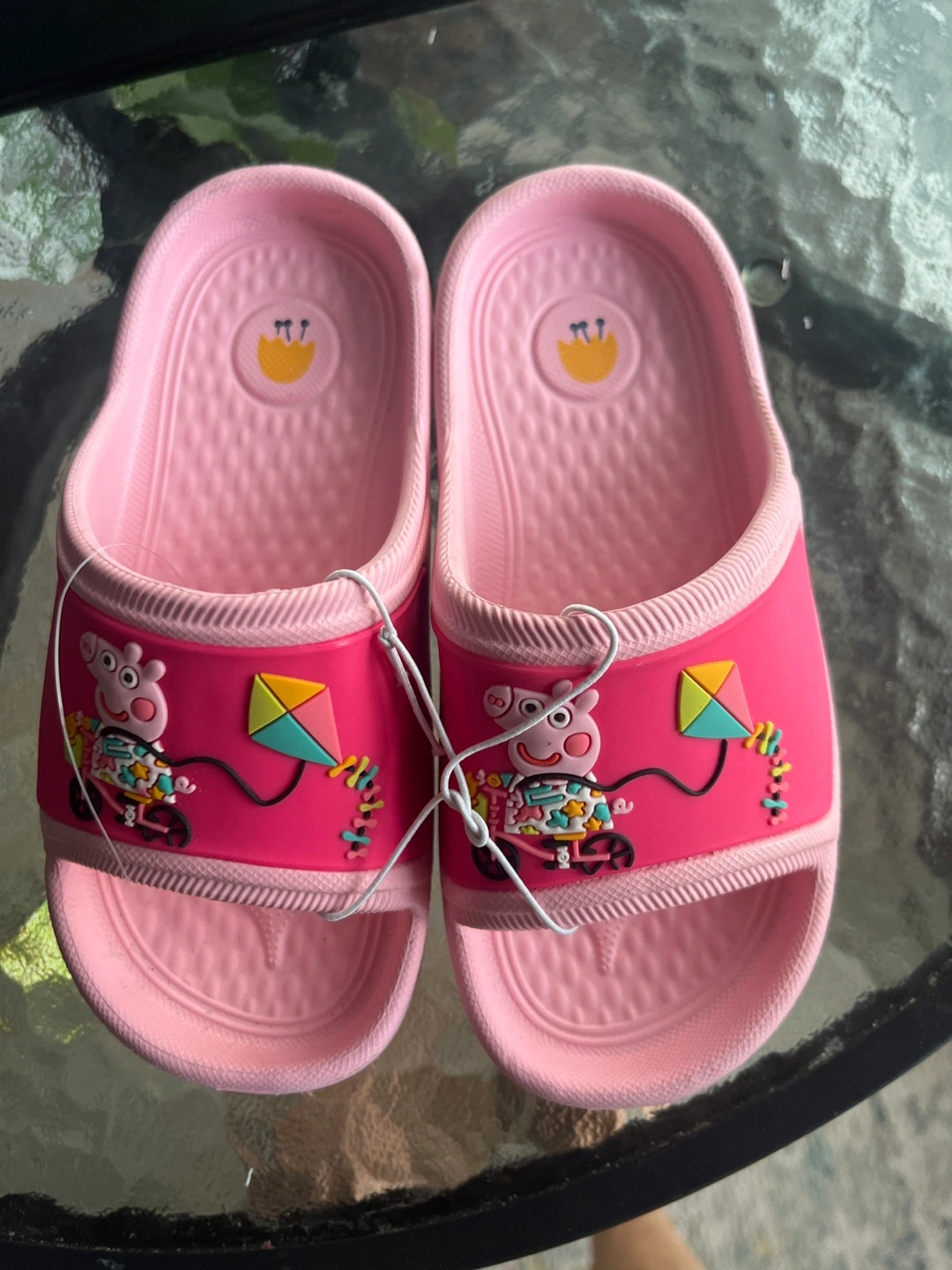 These adorable pink Peppa Pig slides are perfect for your little one! They are brand new, never worn, and ready for some fun in the sun. The size is a toddler 9 (US/Canada).