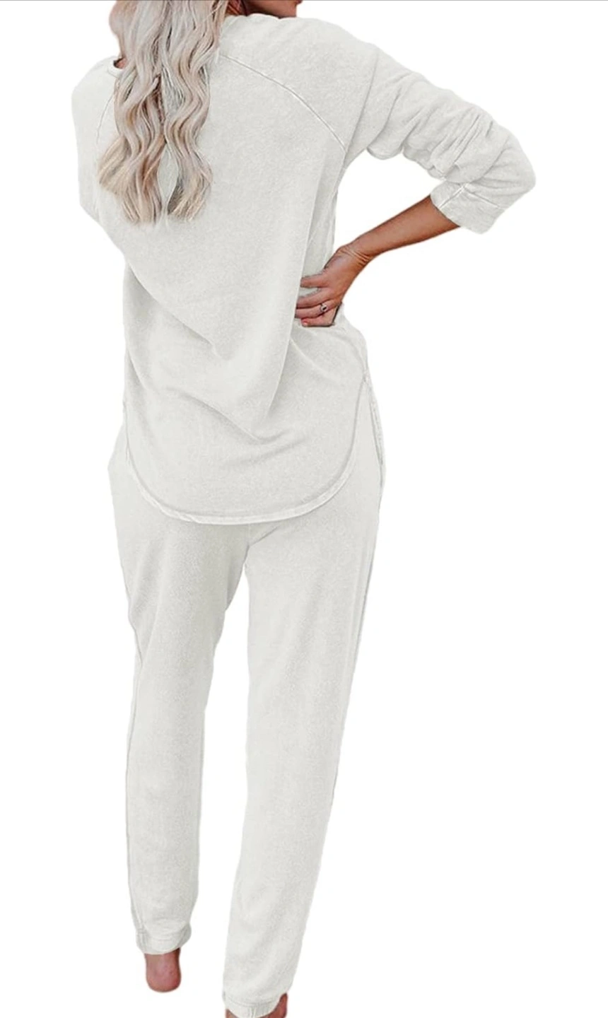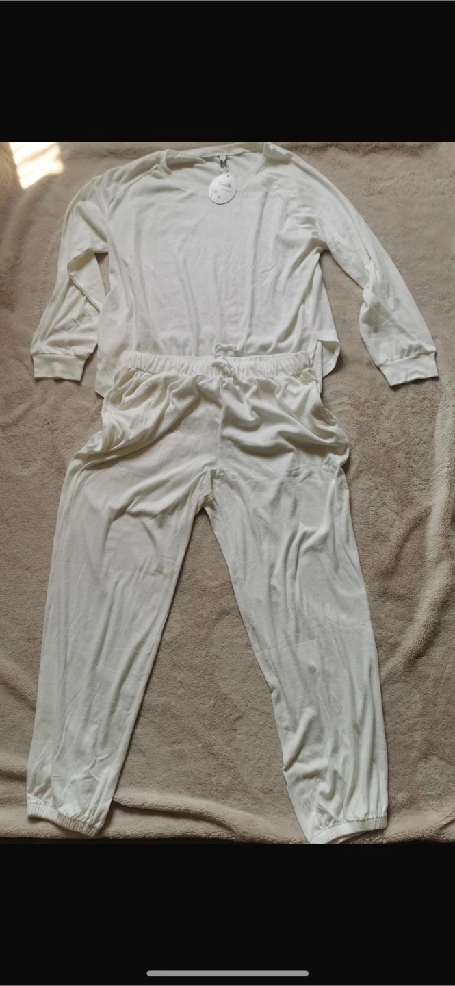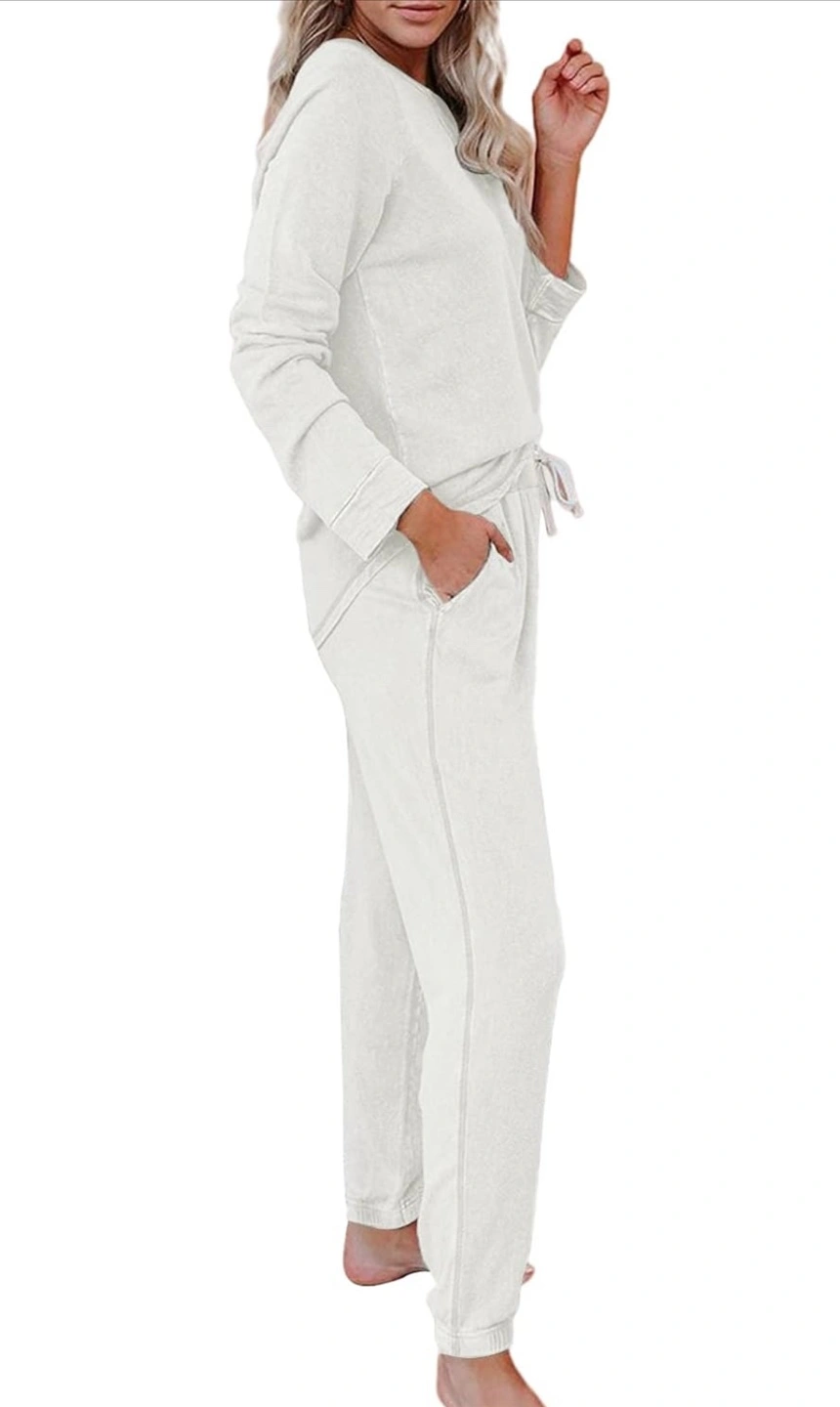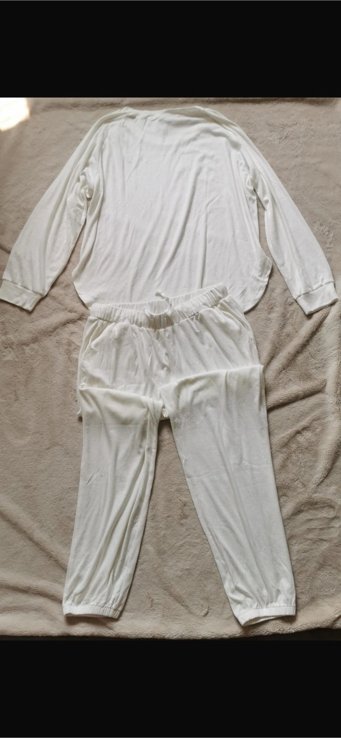 New with tag! Retails for $33 Cozy Saeklia women's lounge set in a lovely off-white colour! It's a size medium/large and perfect for relaxing at home. The set includes a long-sleeved top and matching pants with a drawstring waist. Super comfy! Soft Material: 35% Rayon/ 60% Polyester/ 5% Spandex. The matching sweatshirts and pant sets take your loungewear look to comfy new levels. It is super soft, breathable, and lightweight for all seasons. Feature: These two piece sets feature crewneck long sleeve tops and drawstring jogger pants with 2 pockets to match delivers a cute and coordinated look. These women lounge pants come with an elastic, adjustable drawstrings waistband for an easy and relaxed fit. Occasions: Women's fashion clothes are not only suitable for your daily wear, but also perfect as a home, casual, lounge, hotel, travel, vacation, pajamas party, brunch, active, gym, jogger, and outdoor wear outfits sets. Great for lounging and sleeping. Collocations: Pair the 2 piece outfits with sneakers, sandals, or heels to keep you comfortable and relaxed all day for different occasions!