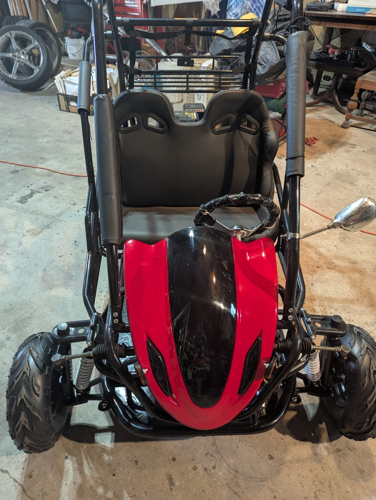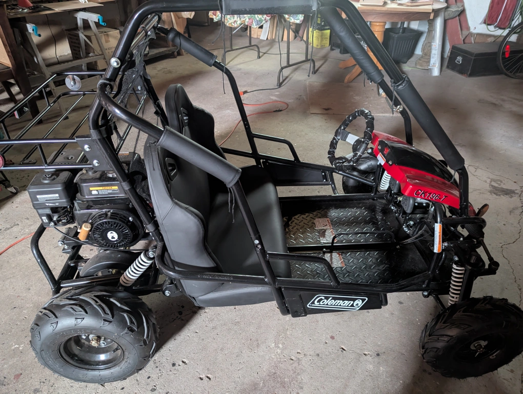 Selling a Coleman CK196-T go-kart. It features a black frame with a red front. Great for some off-road fun! Only has less then 6hrs run time.