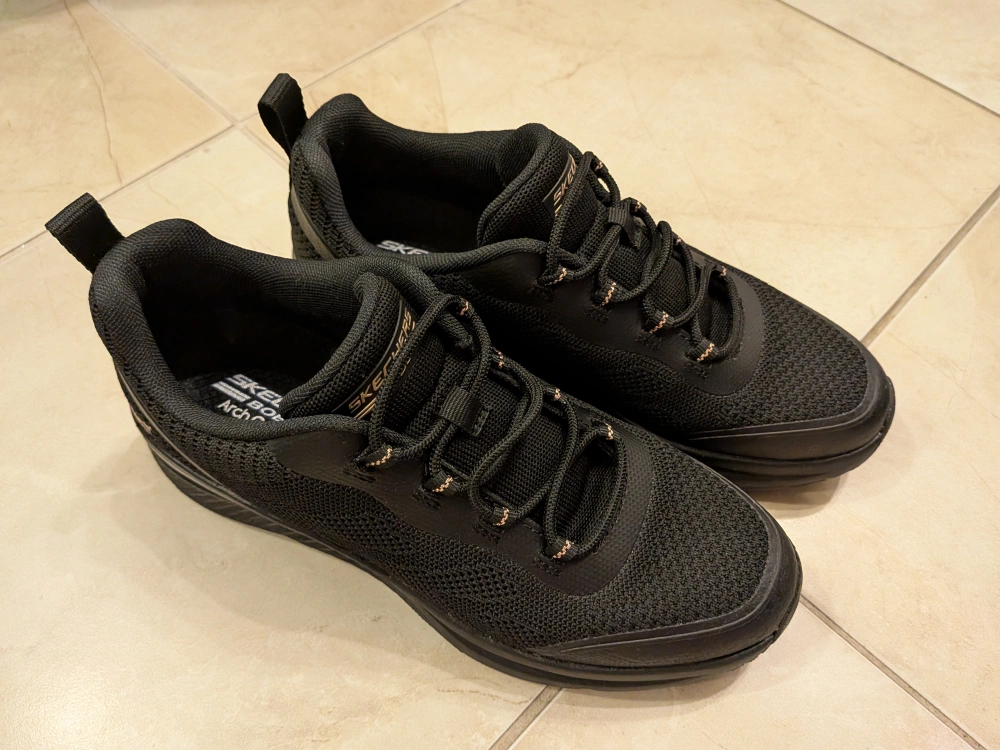 Worn once; trying to declutter ๐ธ Skechers Arch Fit slip-on shoes in black. They're super comfy and in great shape! Perfect for everyday wear or light workouts. Size is US 7 no price negotiation Retail value $95