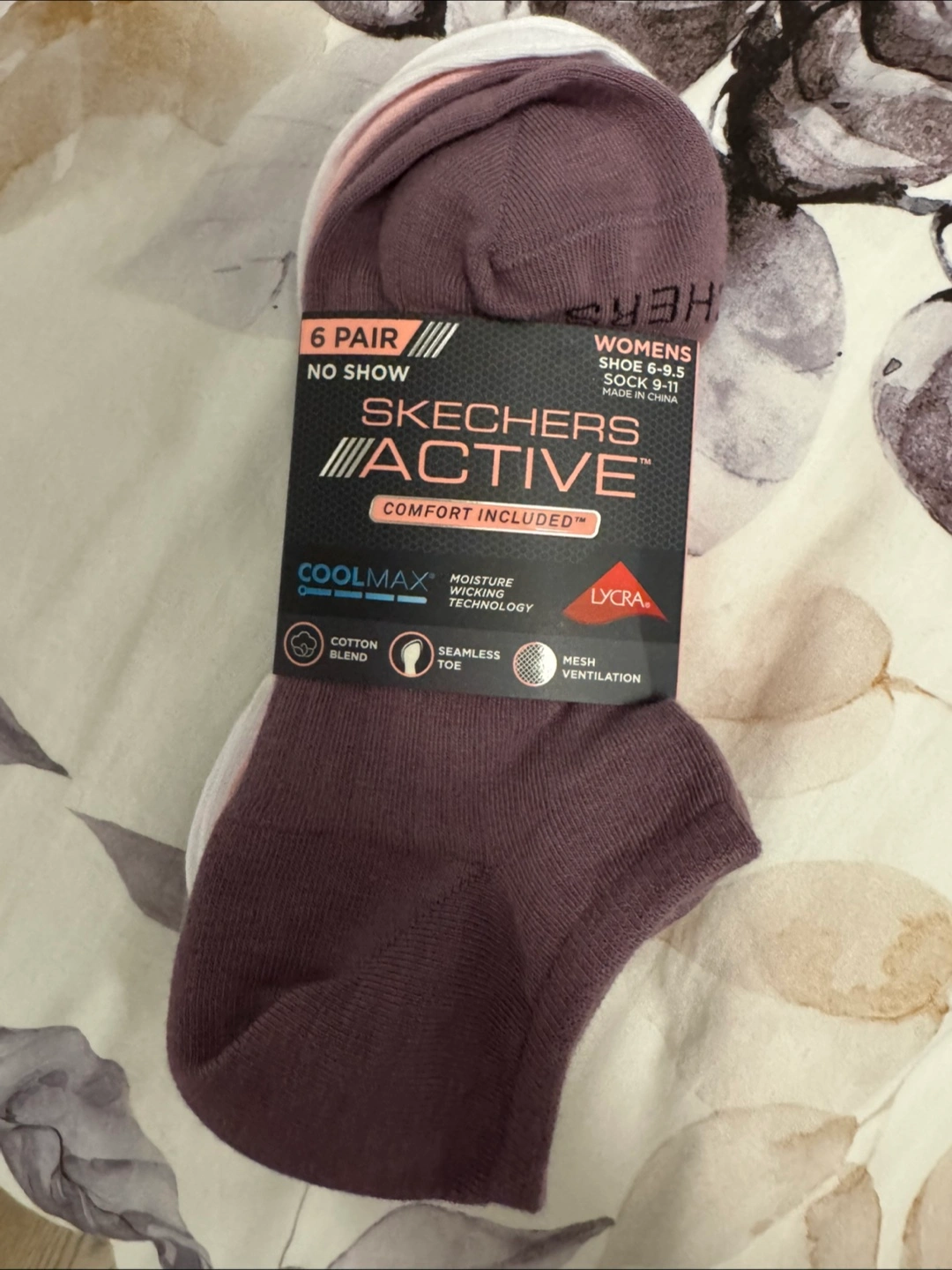 BRAND NEW Skechers Active no-show socks! This pack includes 6 pairs of women's socks, sized for shoe sizes 6-9.5 and sock sizes 9-11.