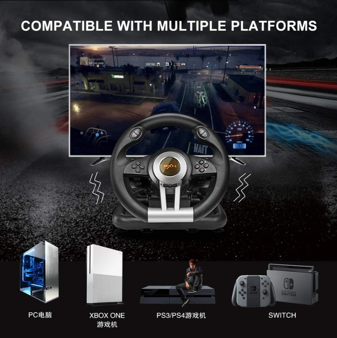 PC Racing Wheel, Experience PXN Left and Right Dual Vibration Motors and 180° Spin Racing Game Steering Wheel with Linear Pedals/Accelerator Brake for PC/PS3/PS4/Xbox One/Switch Host(Black) °•○•°•○•°•○•°•○•°•○•°•○•°•○•°○•°•○°•○°•○ 🌟 Price: $100 📦 Condition: New in open box. unused 📍 Pick-Up: Scarborough Golf Club Rd & Lawrence Ave E 🚀 Fast Delivery: local within reasonable range or budget-friendly shipping via Canada Post/UPS. 🔎 Don't Miss Out! Explore my other listings for more amazing deals. Thanks for stopping by! °•○•°•○•°•○•°•○•°•○•°•○•°•○•°○•°•○°•○°•○ 🎮 Product Details & Features: ✅ Model: PXN V3 Pro Racing Wheel ✅ Compatibility: 6-in-1 system compatible with PC / PS3 / PS4 / Xbox One / Xbox Series X|S / Nintendo Switch ✅ Rotation: 180° turning angle with ergonomic design and rubber-textured anti-slip grip ✅ Pedals: Linear, collapsible gas + brake pedals with throttle lock value ✅ Shifting: Equation-style racing shift paddles + manual shifter for authentic sim driving ✅ Vibration: Dual-motor force feedback delivers realistic vibration auto-adjusted to driving scenes ✅ Mounting: Strong suction cups + C-shaped clamp for stable setup on most desks/tables ✅ Design: 10.24” (26cm) diameter racing-style wheel --- ⚠️ Notes: The unit is new open box—unused, fully functional, verified contents. No additional drivers needed for console plug & play. Confirm compatibility with specific games before purchase. --- 📌 Why This Racing Wheel? 🎯 Works across multiple gaming platforms 🎯 Immersive driving feel with vibration + manual shifting 🎯 Easy secure mounting for desks/tables 🎯 Great entry-level sim racing setup