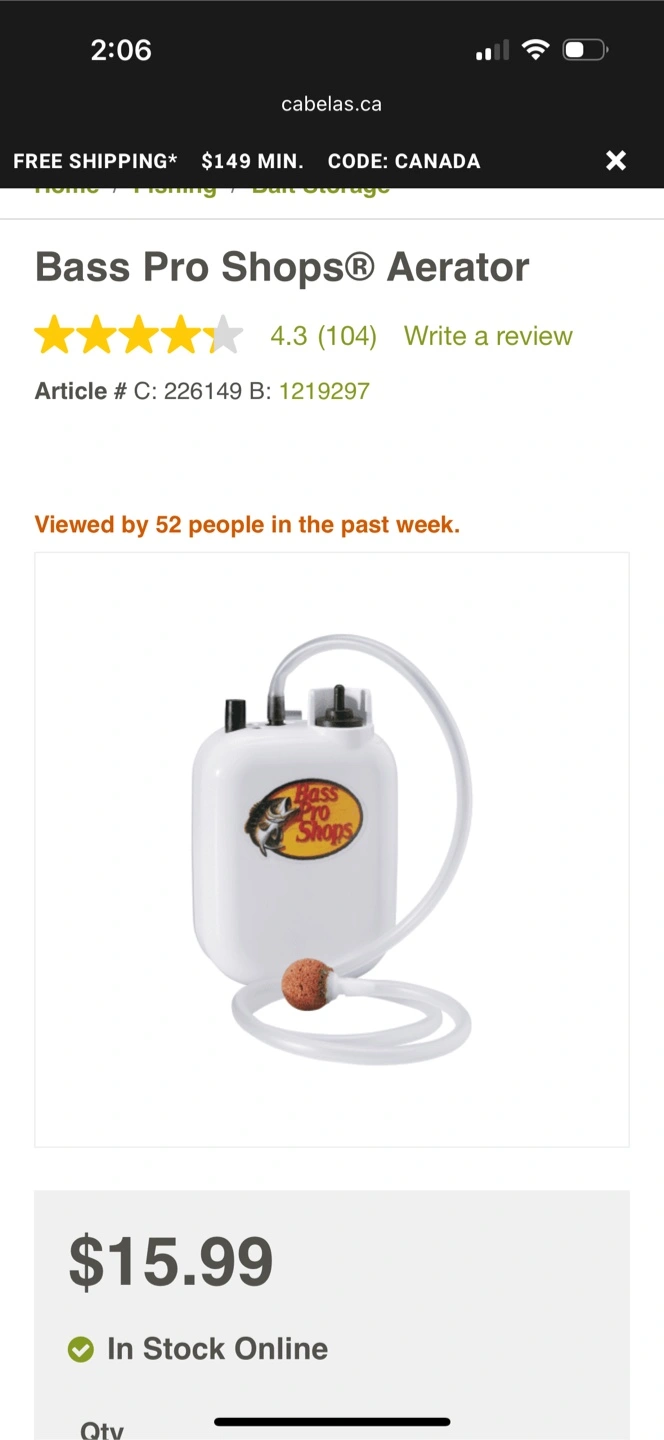 Selling a Bass Pro Shops Aerator air pump - battery operated