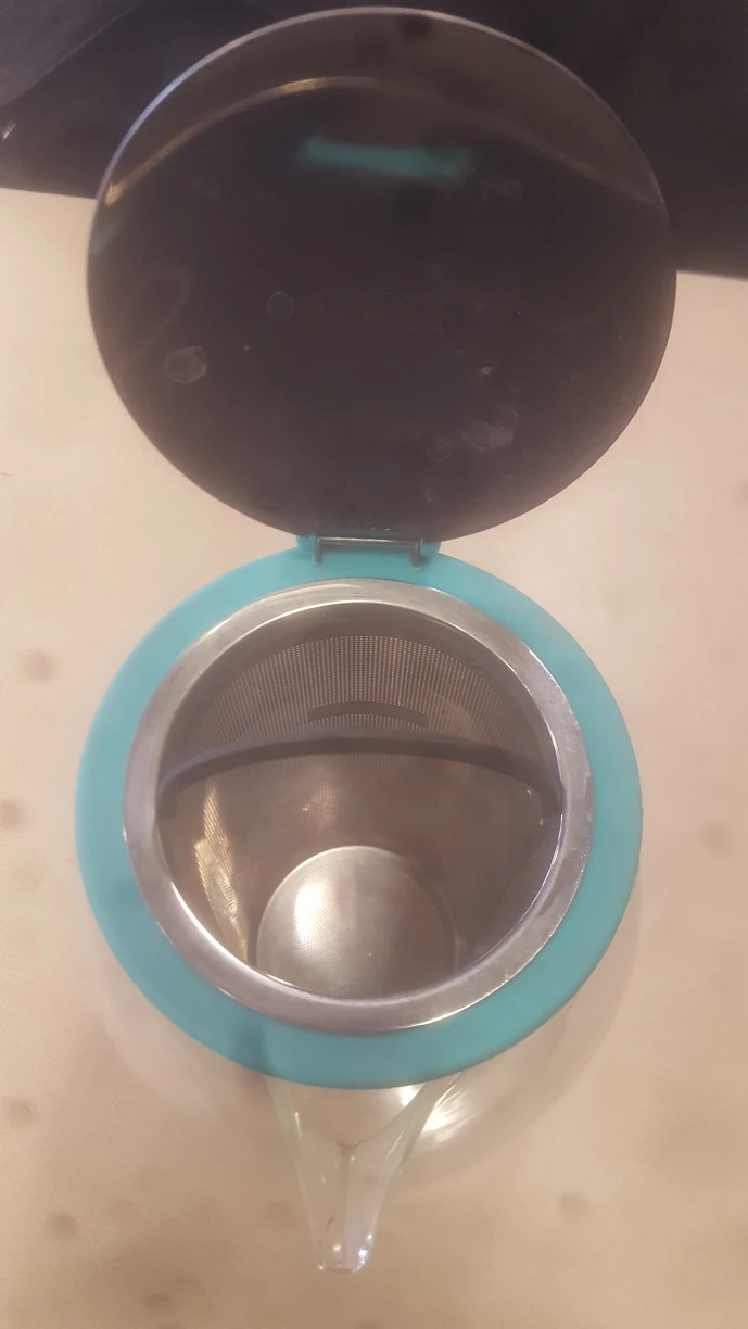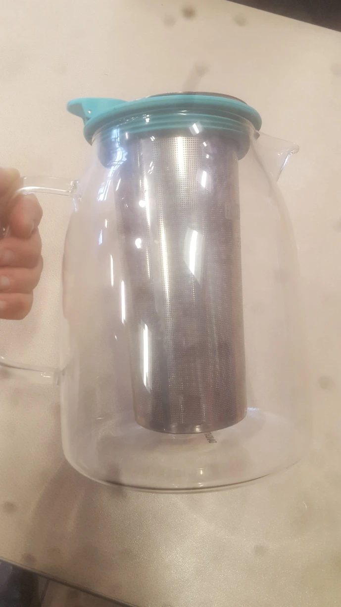 Glass Teapot. Turquoise trim. Heat resistant. With Tea Infuser. Pick up Ossington area or Dupont