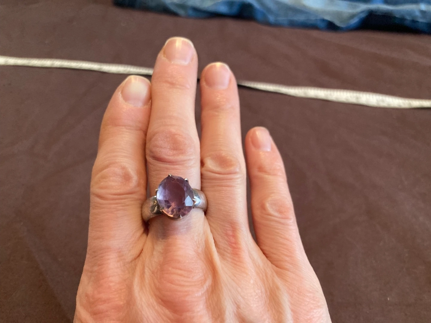 polished amethyst and sterling silver ring