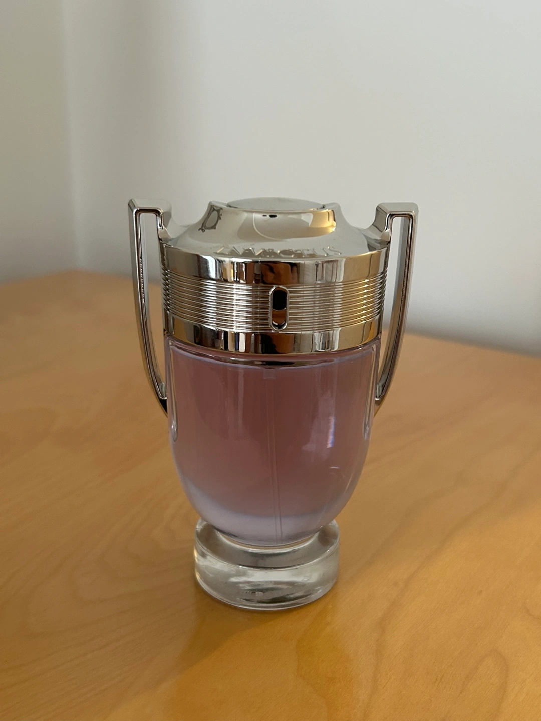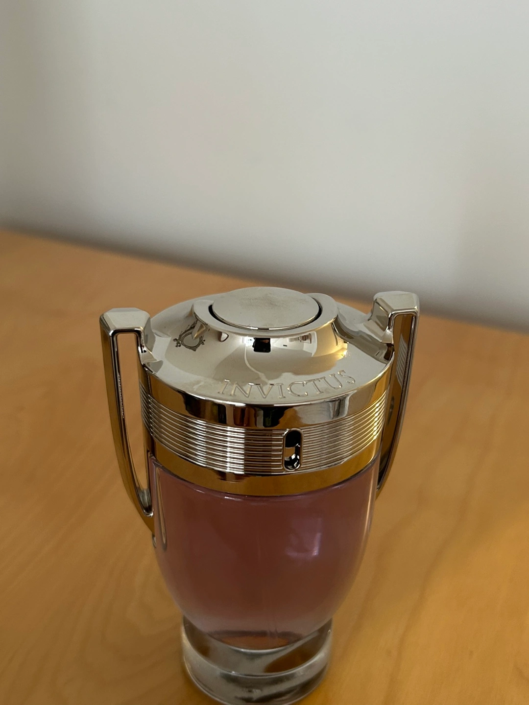 Selling a bottle of Paco Rabanne Invictus Eau de Toilette. It's in great condition and ready for a new home! The bottle has a unique trophy-like design, making it a standout addition to your fragrance collection