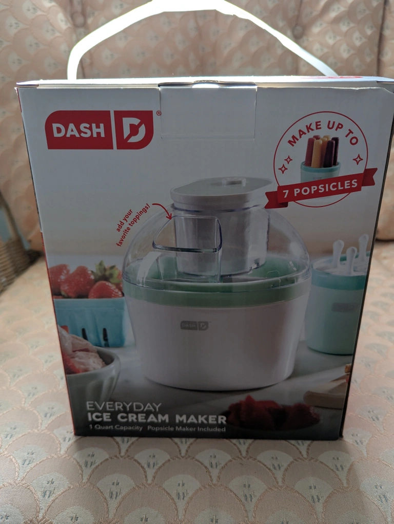 I have a brand new DASH Everyday Ice Cream Maker! It has a 1 quart capacity and even includes a popsicle maker. You can make up to 7 popsicles and add your favourite toppings. The box is included. never used , retail 100.00