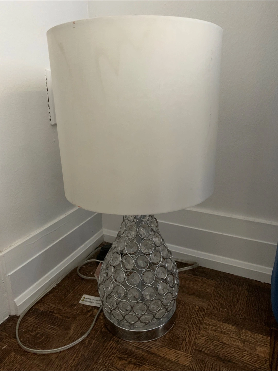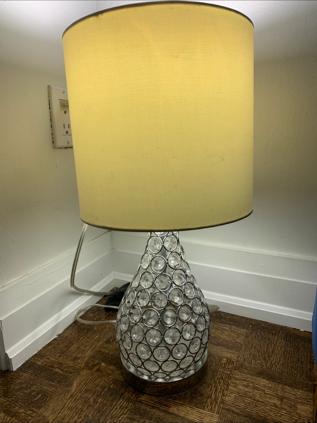 Selling a beautiful table lamp with a crystal bead base. It's in great condition and would add a touch of elegance to any room