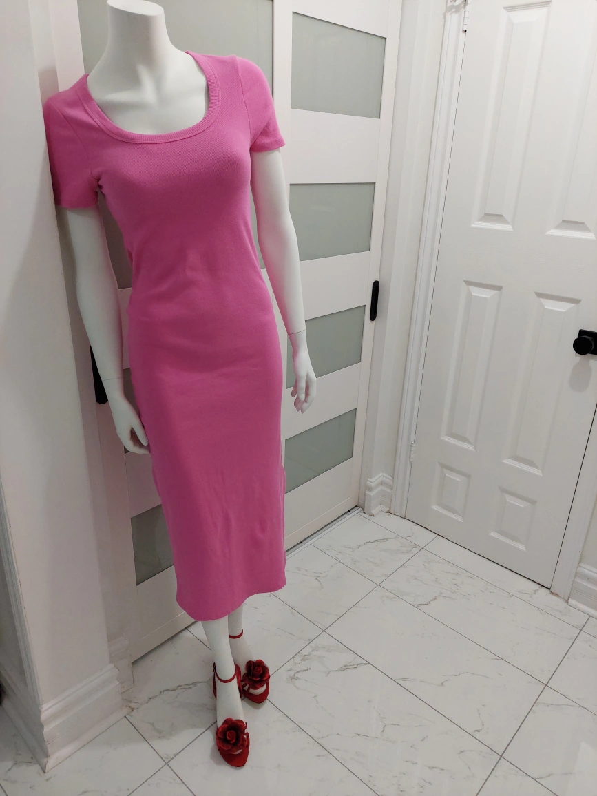 Selling a brand new Retik rib short sleeve split midi dress. Fits as small to medium. The dress is a vibrant hot pink colour and looks great with any color accessories. Cotton On brand. Please browse at my other pieces for a discount on multiple orders. Thank you for your time.