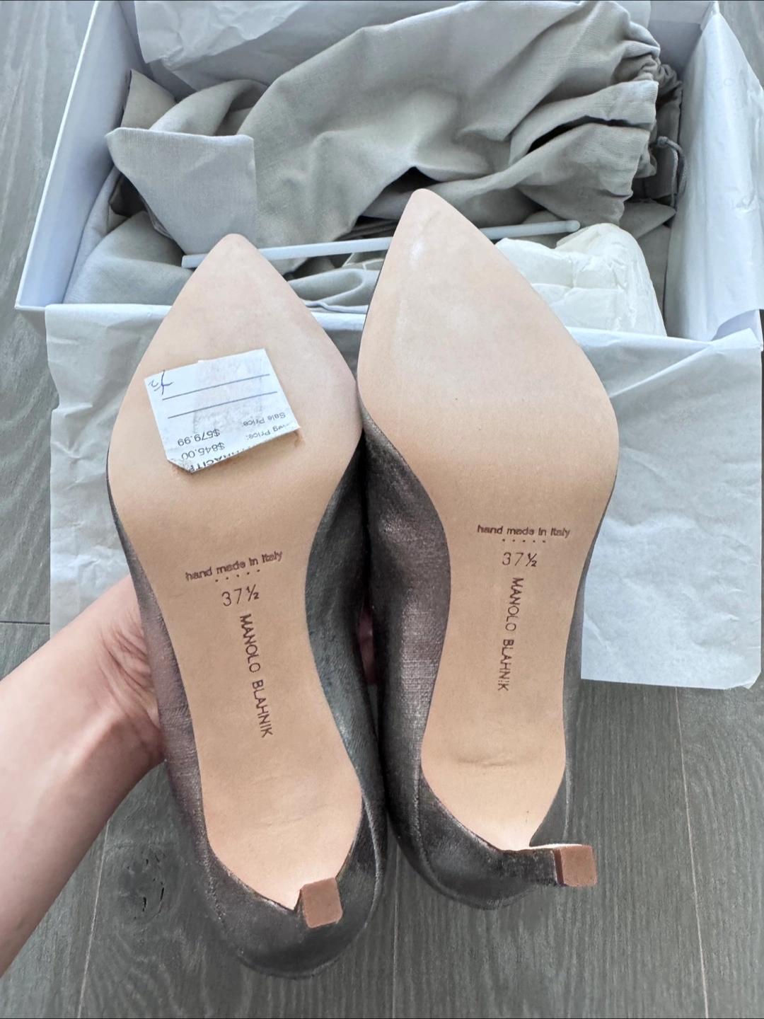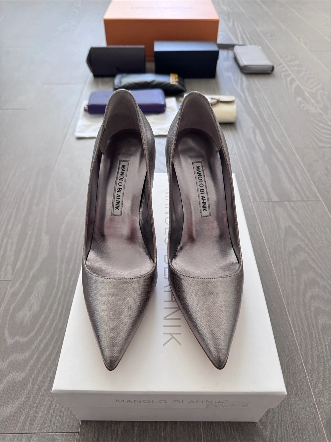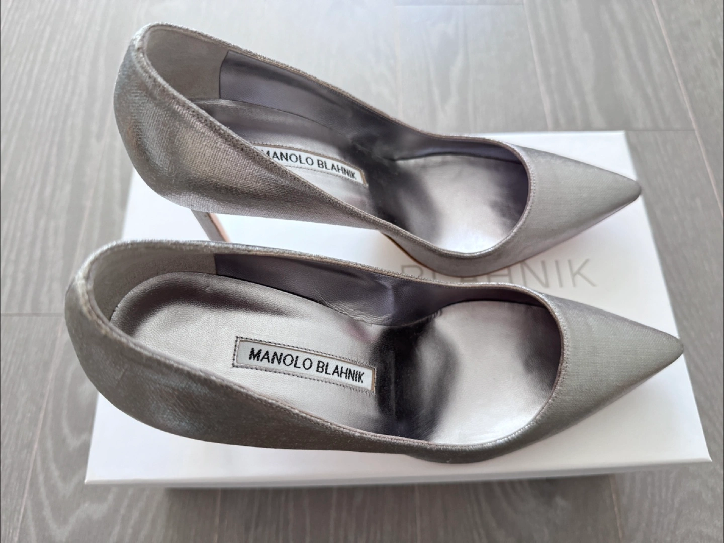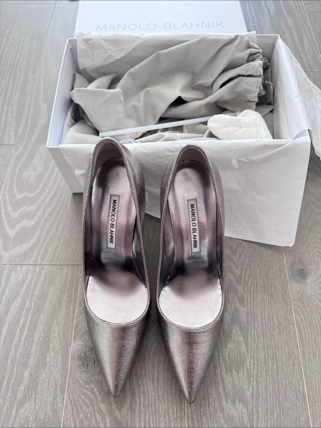 Selling a pair of Manolo Blahnik heels in a lovely silver colour. They are a size 37.5 and come with the original box