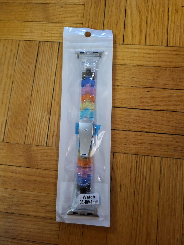 Selling a brand new Apple Watch band, still in its original packaging! This band is compatible with 38/40/41mm Apple Watches and features a fun, colourful design