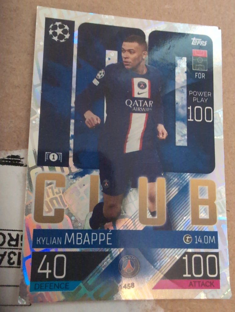Selling a Kylian Mbappe Topps Match Attax trading card. Great for collectors!