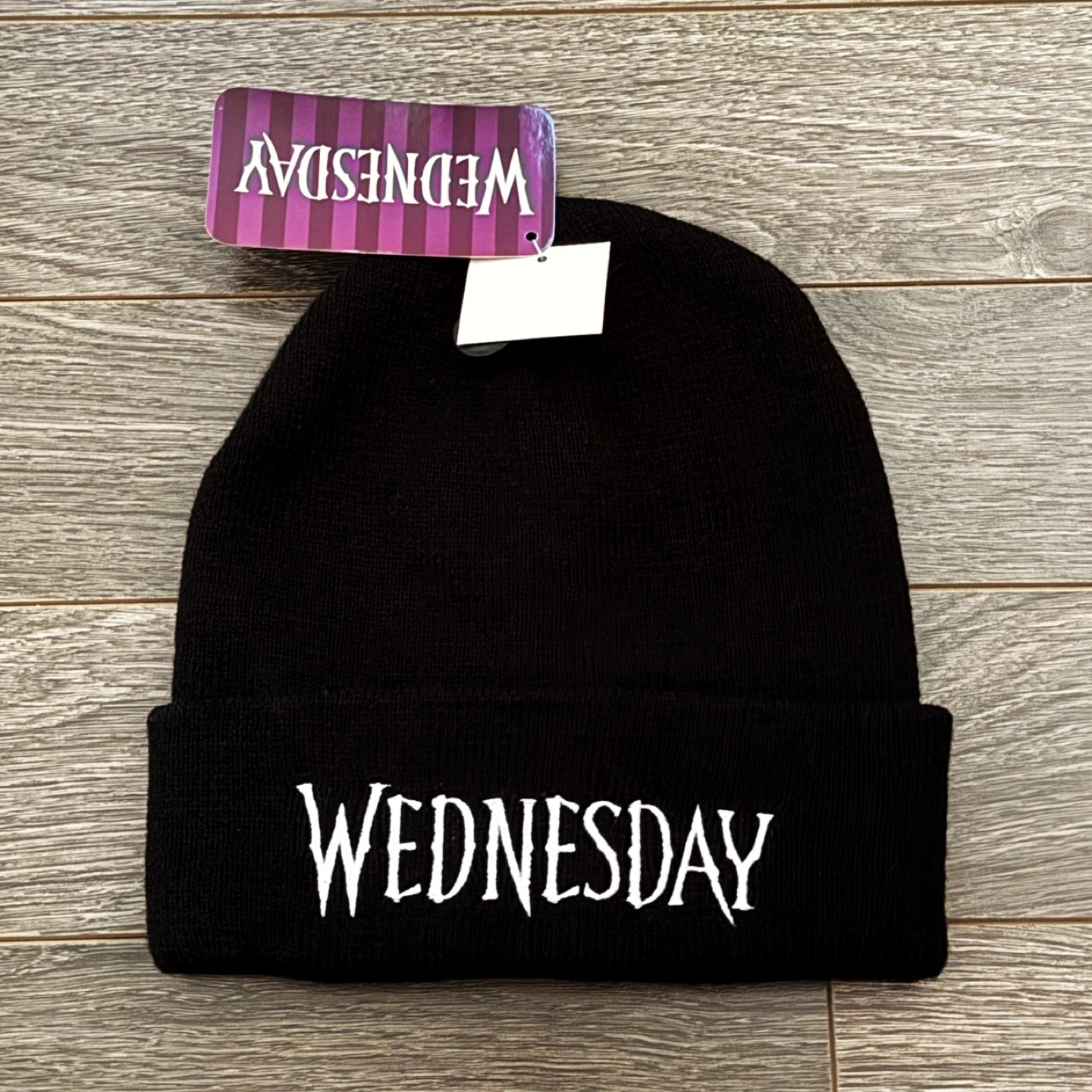Brand new Wednesday Addams black beanie with the tag still on. It's a stylish beanie with the word "Wednesday" embroidered on the front. Perfect for fans of the show or anyone who loves a cool, simple beanie! Cash only Pick up only