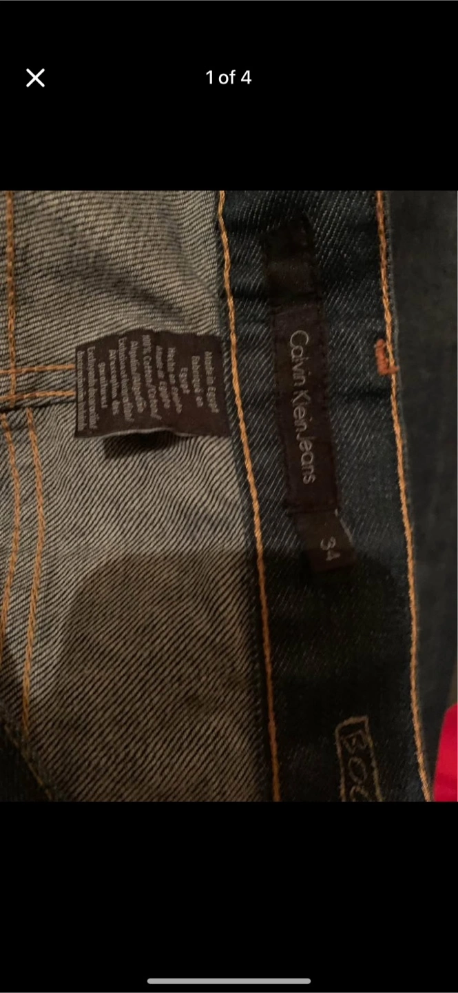 Selling a pair of Calvin Klein jeans in size 34! They are made from 100% cotton and manufactured in Egypt