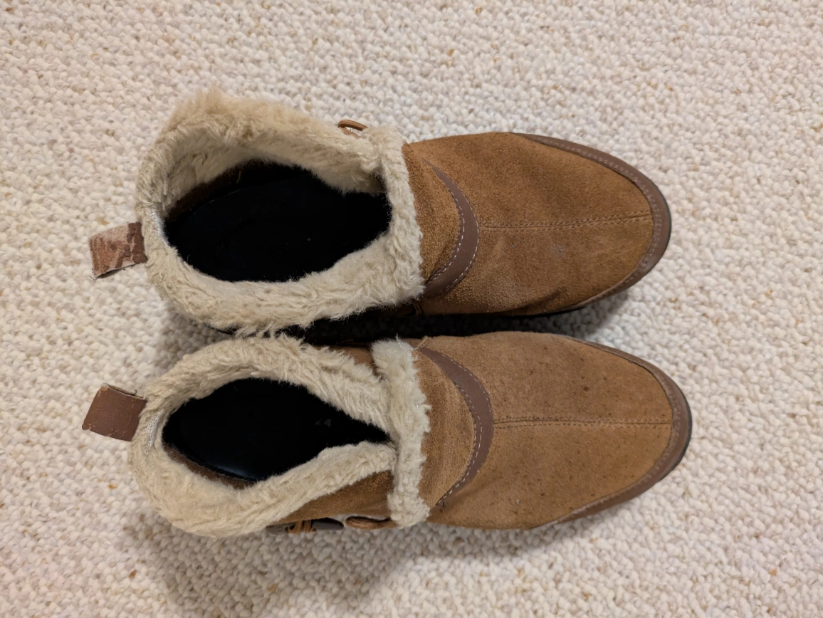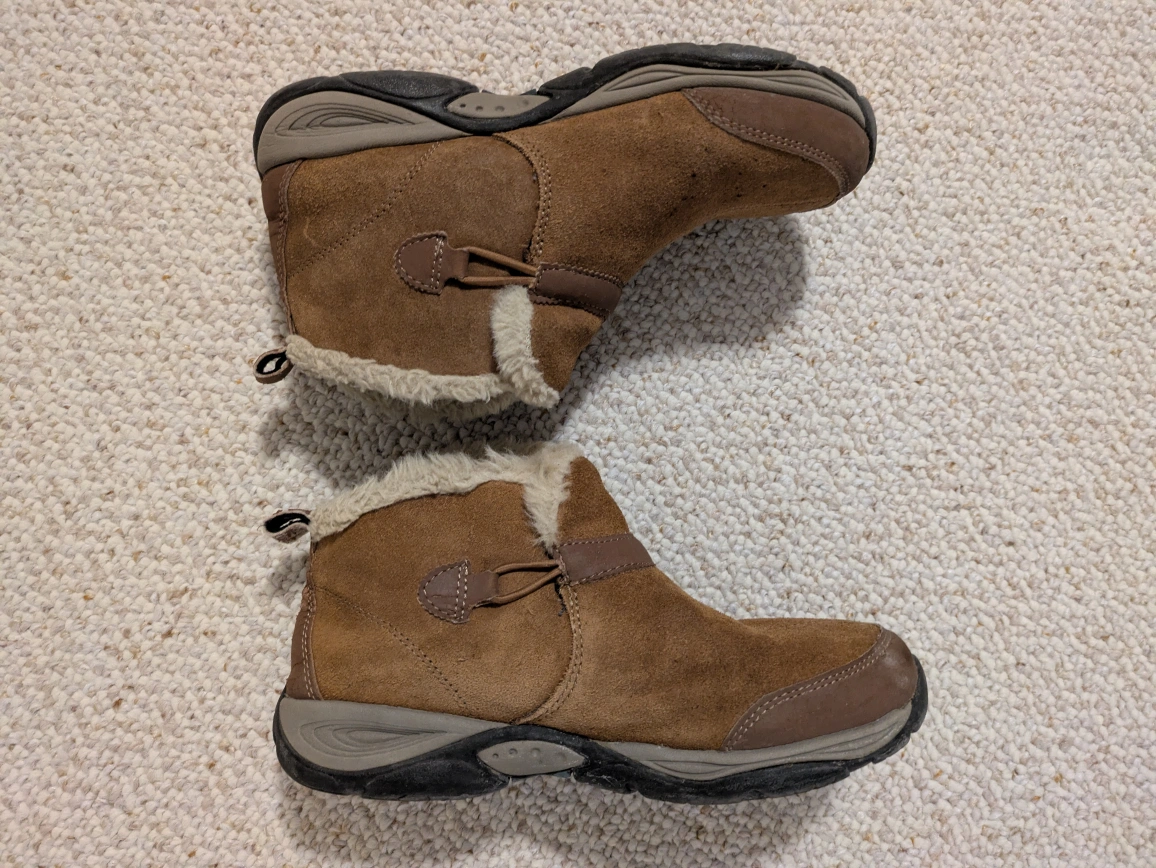 Cozy Espirito winter boots in a lovely brown suede! They're perfect for keeping your feet warm and stylish during the colder months. These boots are pre-owned and show some signs of wear, but are still in great condition for everyday use