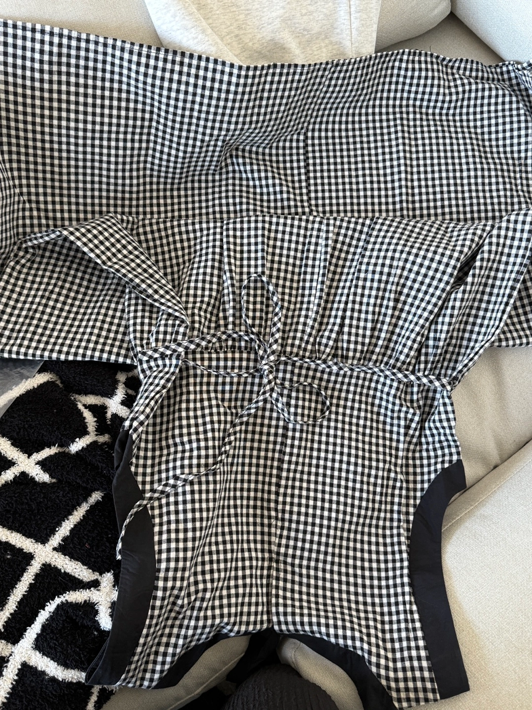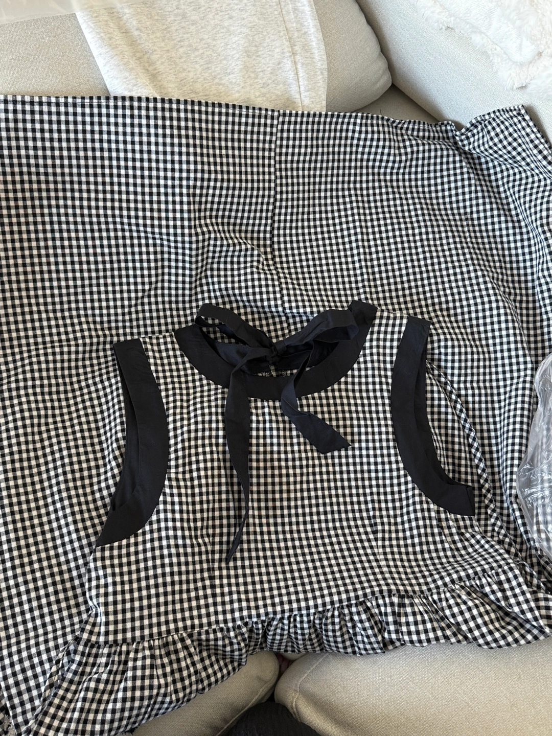 A cute gingham print dress with a tie back detail! Perfect for summer days or layering in the fall. It'snew with tag. Max waist 100cm DT queen st pickup only
