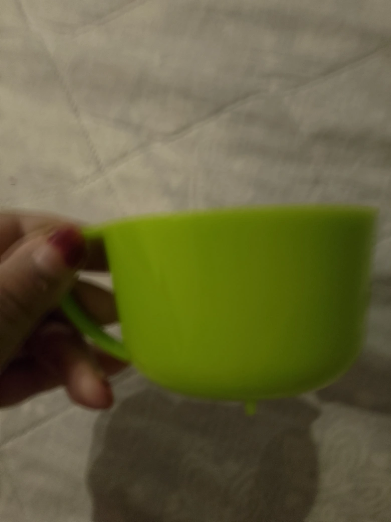 A green plastic cup in good condition! β³οΈ π I'm giving it away as we have many similar items.