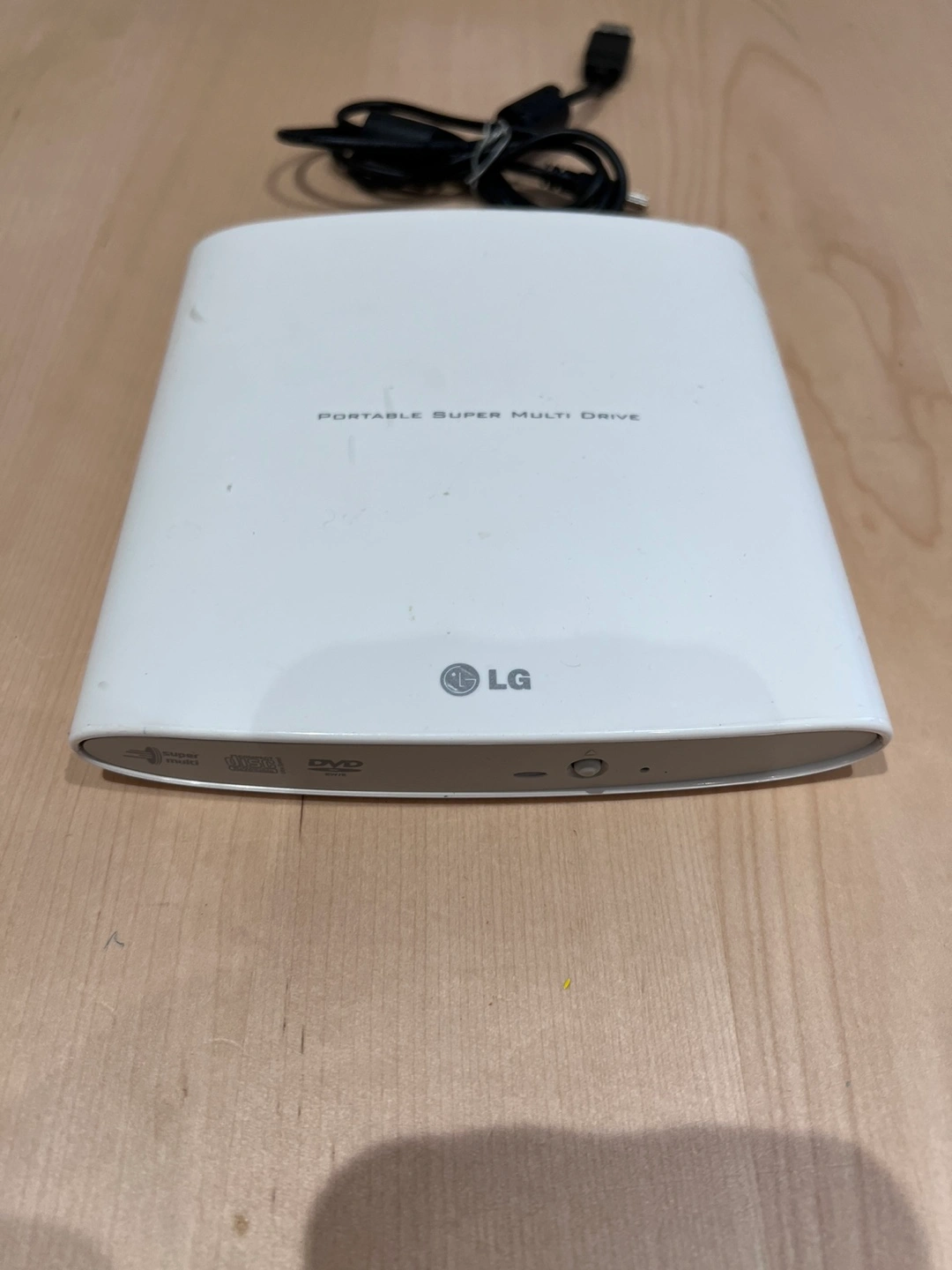 Selling a used LG Portable Super Multi Drive. It comes with the cable shown in the pictures. Great for using with laptops that don't have a built-in DVD drive! LG Super-Multi Portable Slim USB 2.0 External DVD-Writer GPO8NU6W