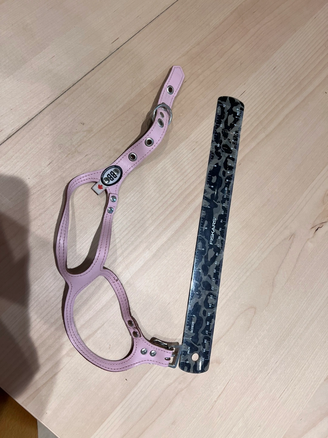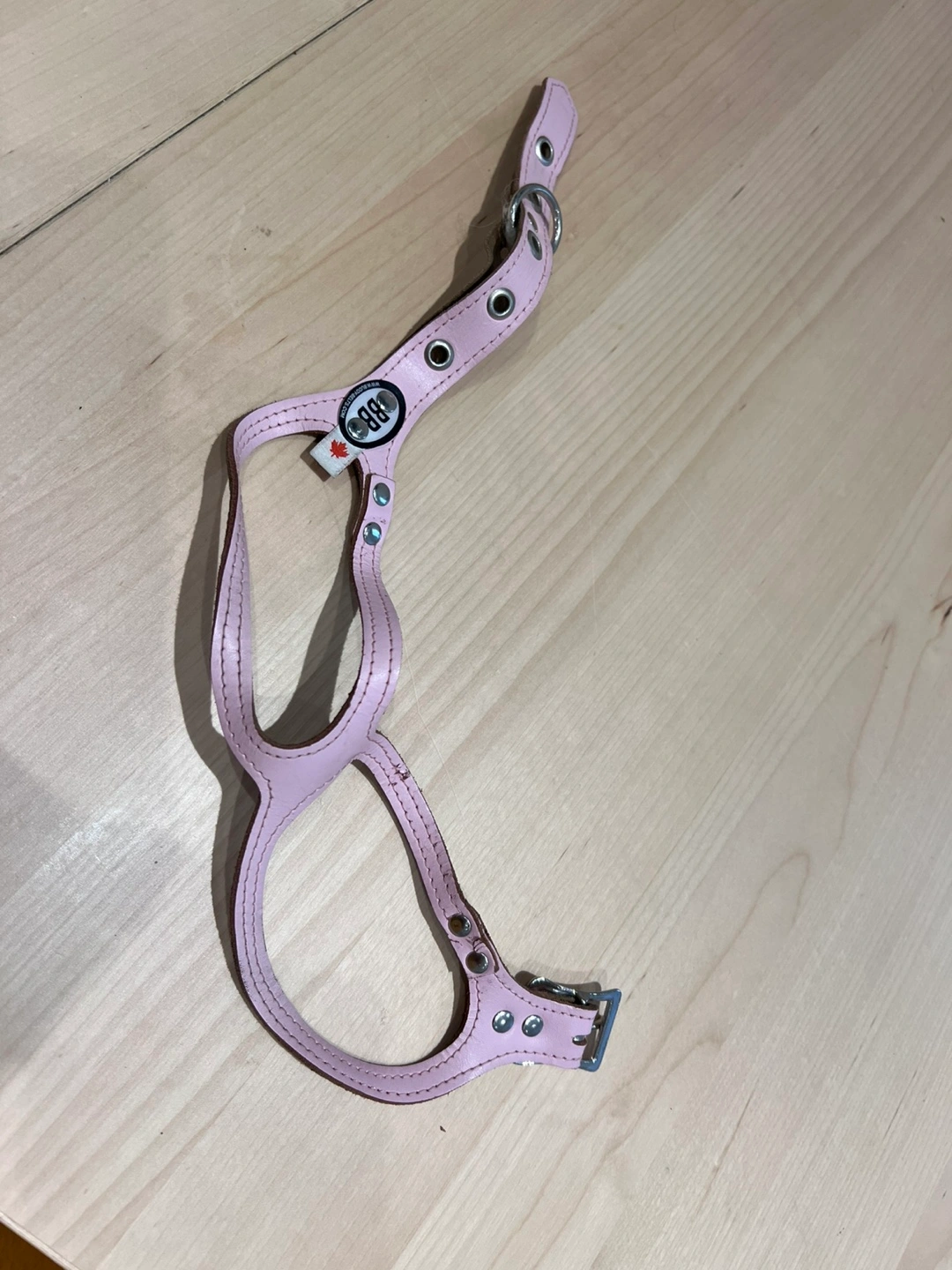 Originally $95 I don’t have a size just the photo with the measurement, it’s for a very small pup Buddy Belt enhances proper function, health and safety. Each BUDDY BELT is handcrafted in Toronto Canada with attention paid to every detail. The quality of the product is the result of continued efforts to make it the best. Class Art Productions Inc. makers of BUDDY BELT strives for 100% customer satisfaction. Its unique patented design reduces stress on your pet's neck is easy to use and is made with 100% leather and quality hardware.