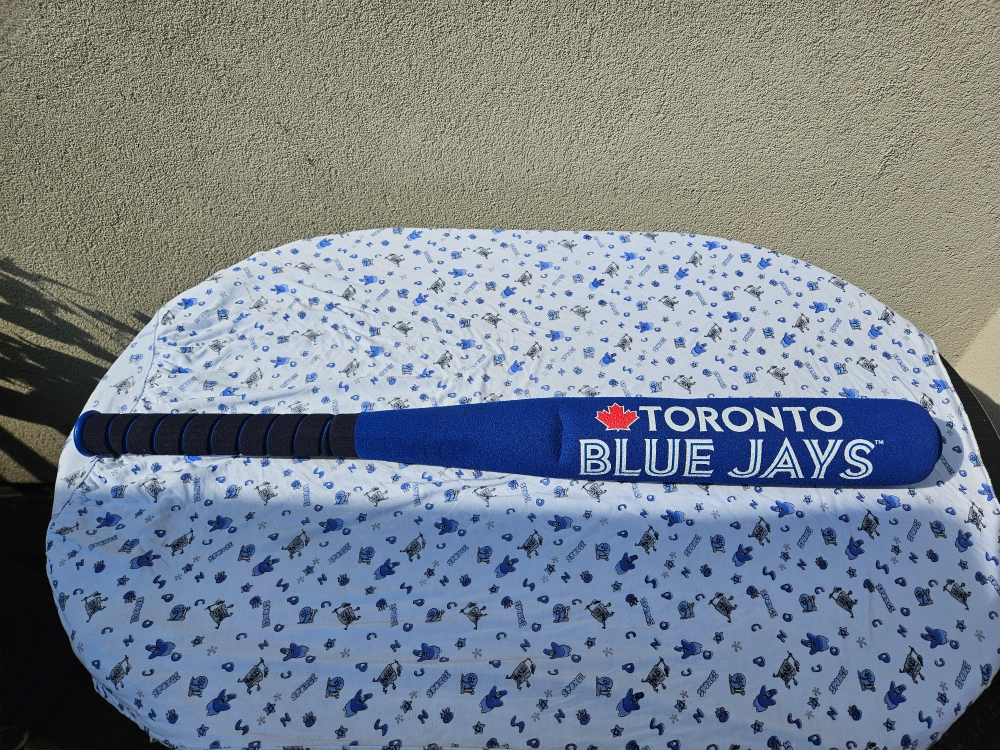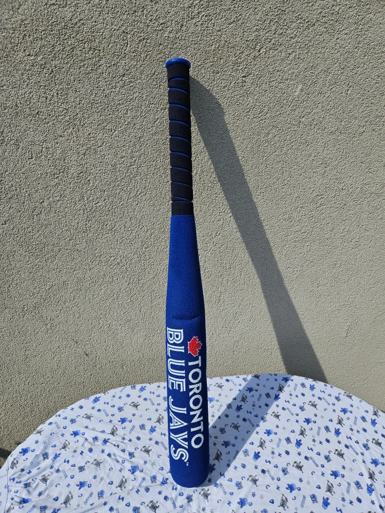 Here's a Toronto Blue Jays foam baseball bat! Perfect for young fans or collectors, it's lightweight and safe for indoor play. Show your team spirit with this fun and vibrant bat!