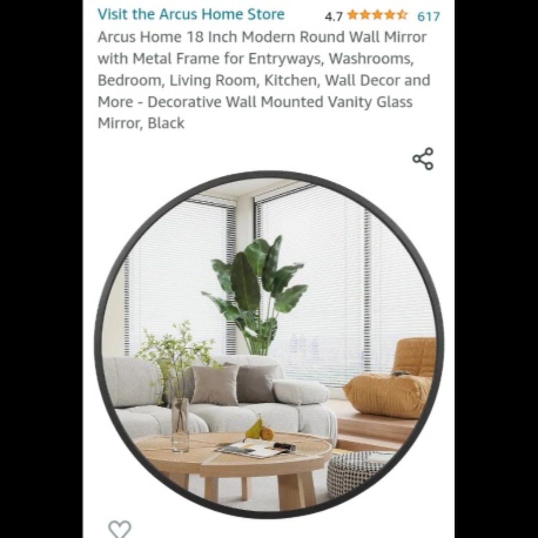 Selling an Arcus Home 18-inch modern round wall mirror with a metal frame. It's perfect for entryways, washrooms, bedrooms, living rooms, kitchens, and more! This decorative wall-mounted vanity glass mirror comes in black and includes all components in the original box