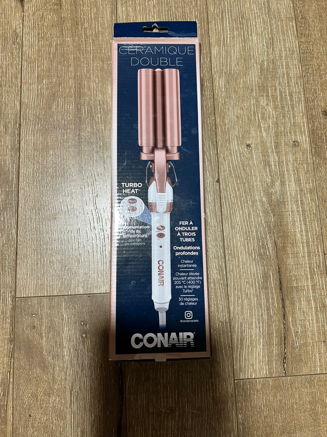 Selling a brand new Conair Ceramique Double Turbo Heat Hair Waver! It's still in its original box and has never been used. This waver features turbo heat and multiple heat settings for creating beautiful, deep waves.