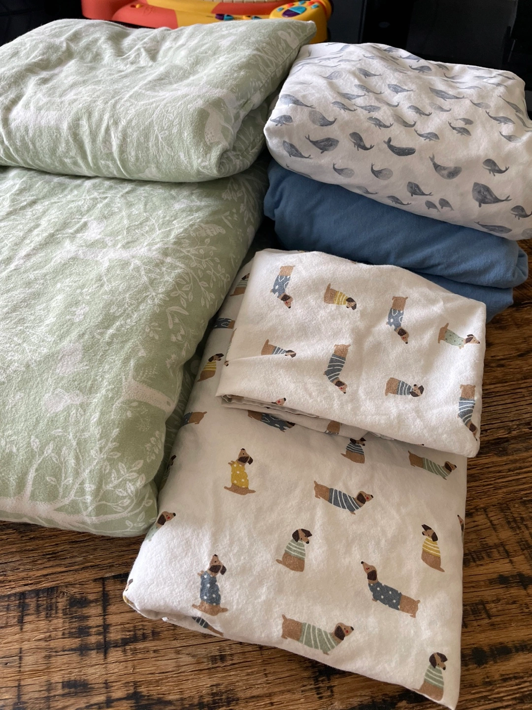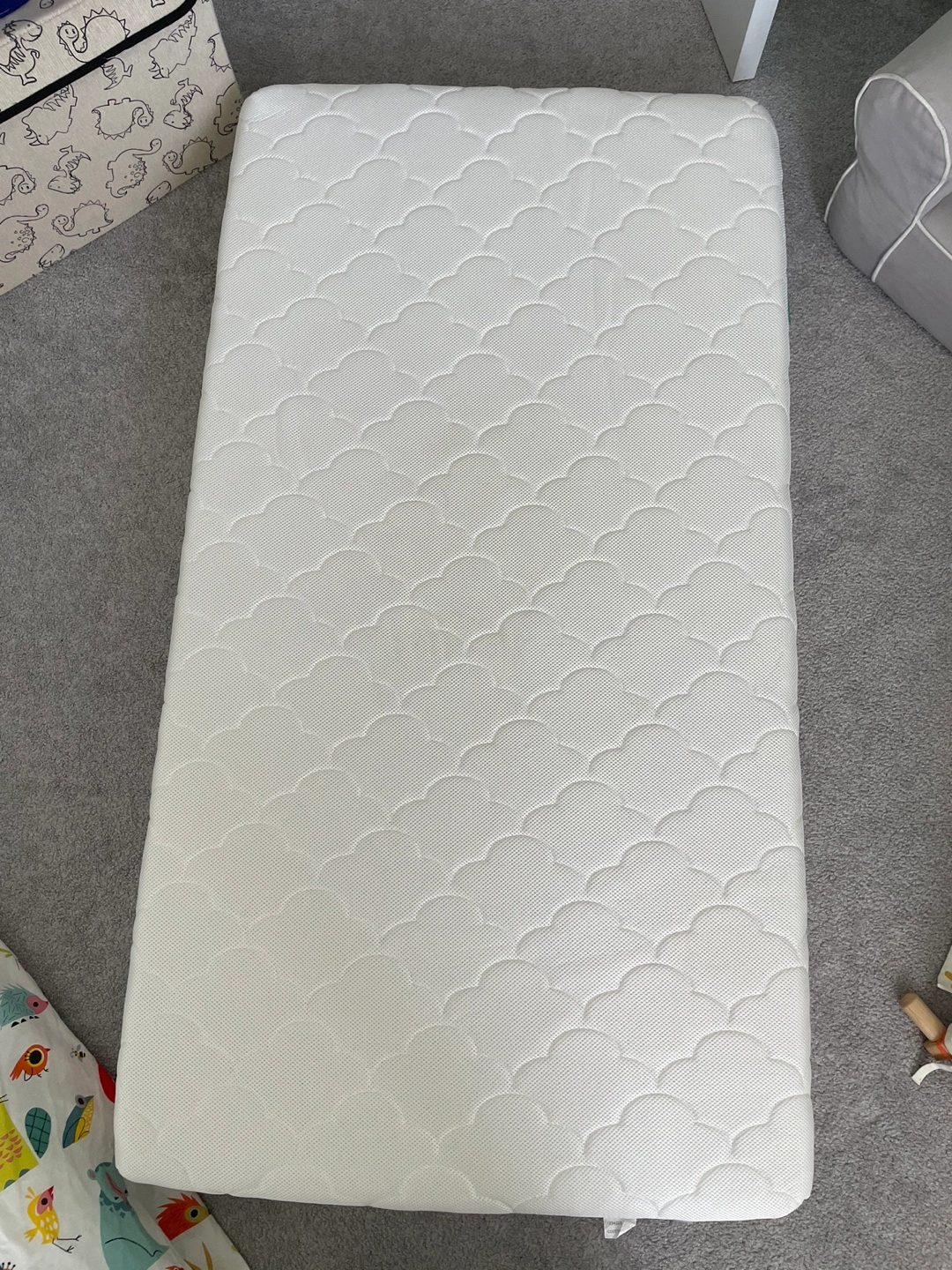 Newton mattress (breathable, washable cover) 2 IKEA fitted sheets 1 pottery barn fitted sheet (whale design) 1 duvet + 1 pillow 2 duvet & pillow cover sets Washed and from a smoke-free, pet-free home