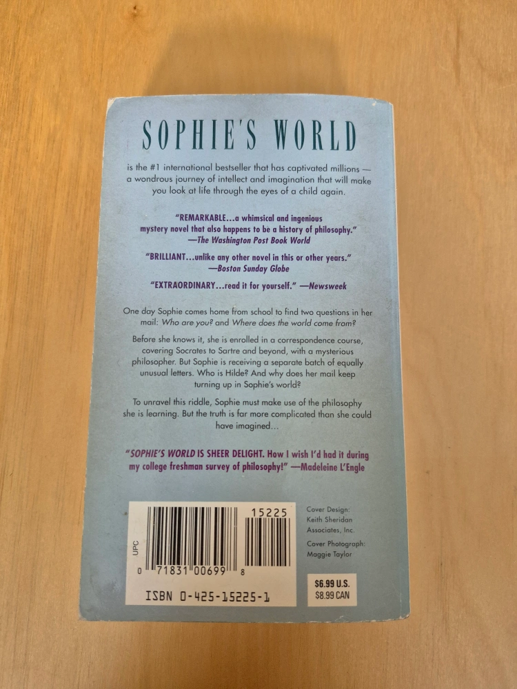Sophie's World : Philosophy made accessible! By Jostein Gaarder. A classic, and an amazing book. An overview of philosophy as presented to a young girl. Makes philosophy accessible! It also has a clever framing story. Good condition (with no writing!) Price is firm