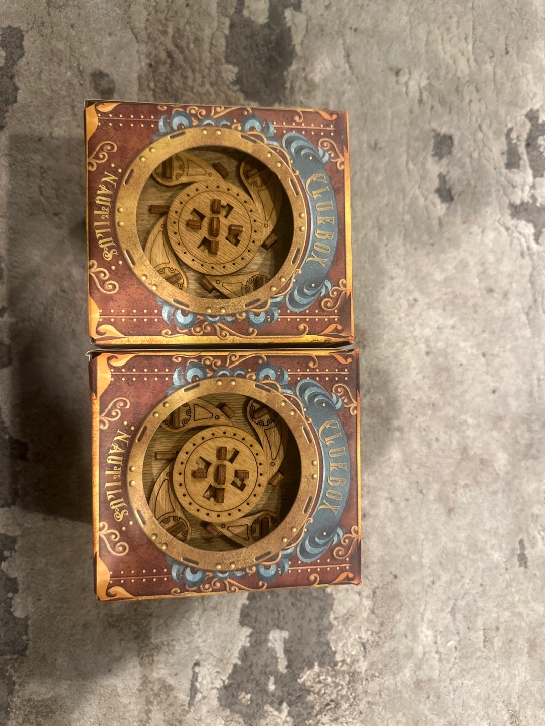 Asking for $65 each if you get both I will sell for $115 Selling two Nautilus wooden puzzle cube boxes! They are in great condition and ready for a new home. These are fun and challenging puzzles that are also beautiful display pieces venture Cluebox - Captain's Nemo Nautilus - Escape Room Game - Cricky 3D Wooden Puzzle Puzzles - Unique Puzzle Games - Escape Box Games for Adults and Puzzle Box