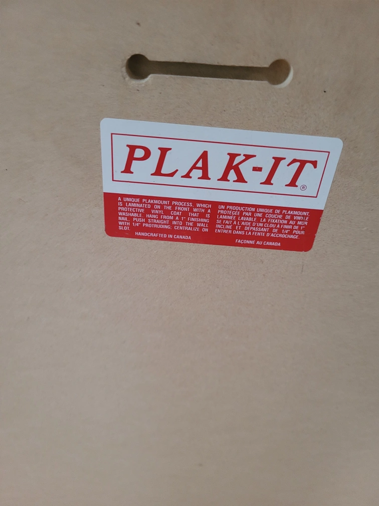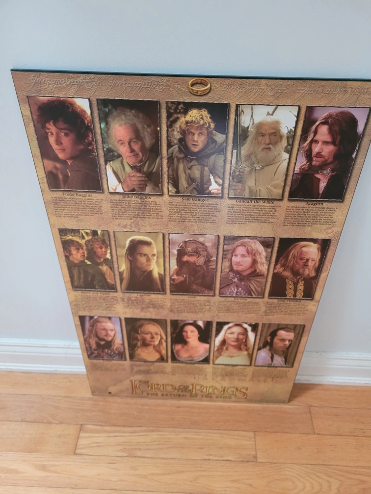 Selling a Lord of the Rings plak-it. It's a unique plakmount process laminated on the surface. The plakmount is protected by a coat that is washable. It can hang from a nail or can be secured directly to the wall with 1/4" protruding. It measures 34.63 x 22.50 cm