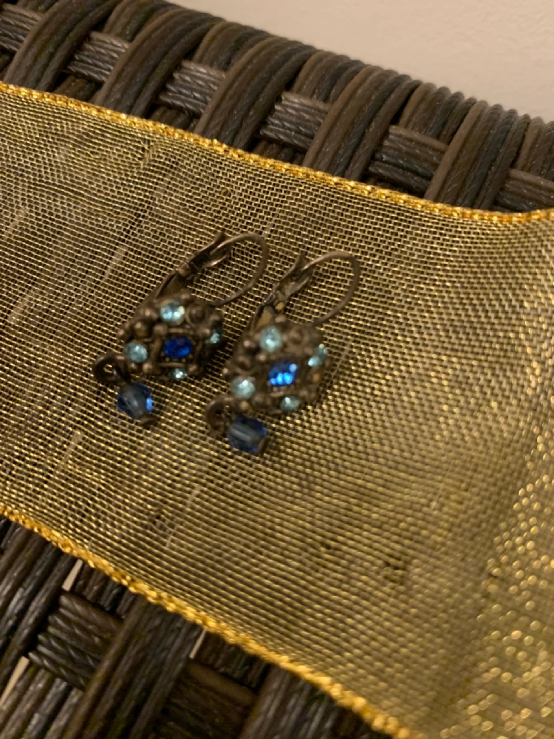 Multi blue square hanging earrings from Tristan America. Pick up in Roncesvalles. No Holds Please. Same Day/Next day pick up preferred.