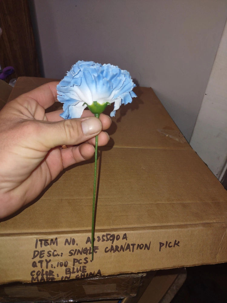 I have 100 single artificial carnations for sale new unused asking $15 let me know