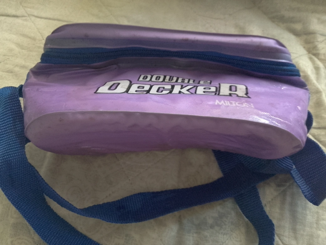 A Milton Double Decker lunch bag. It's purple with blue straps. Great for keeping your lunch cool and organized! Some small stains but they're not quite visible. π I'm giving it away because I donβt like this kind of design.