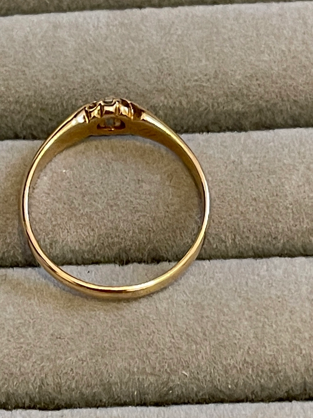 Vintage solitaire ring - it was my mother's first ring, with no carat marking, however she confirmed it is 14k yellow gold and features a .30ct diamond, with JI and Diamond marking inside the ring, and is approximately a size 9. She is uncertain and lacks information about its origins, though it was passed down from her mother, my grandmother. The ring is in excellent condition, having been meticulously maintained and preserved. 💎.