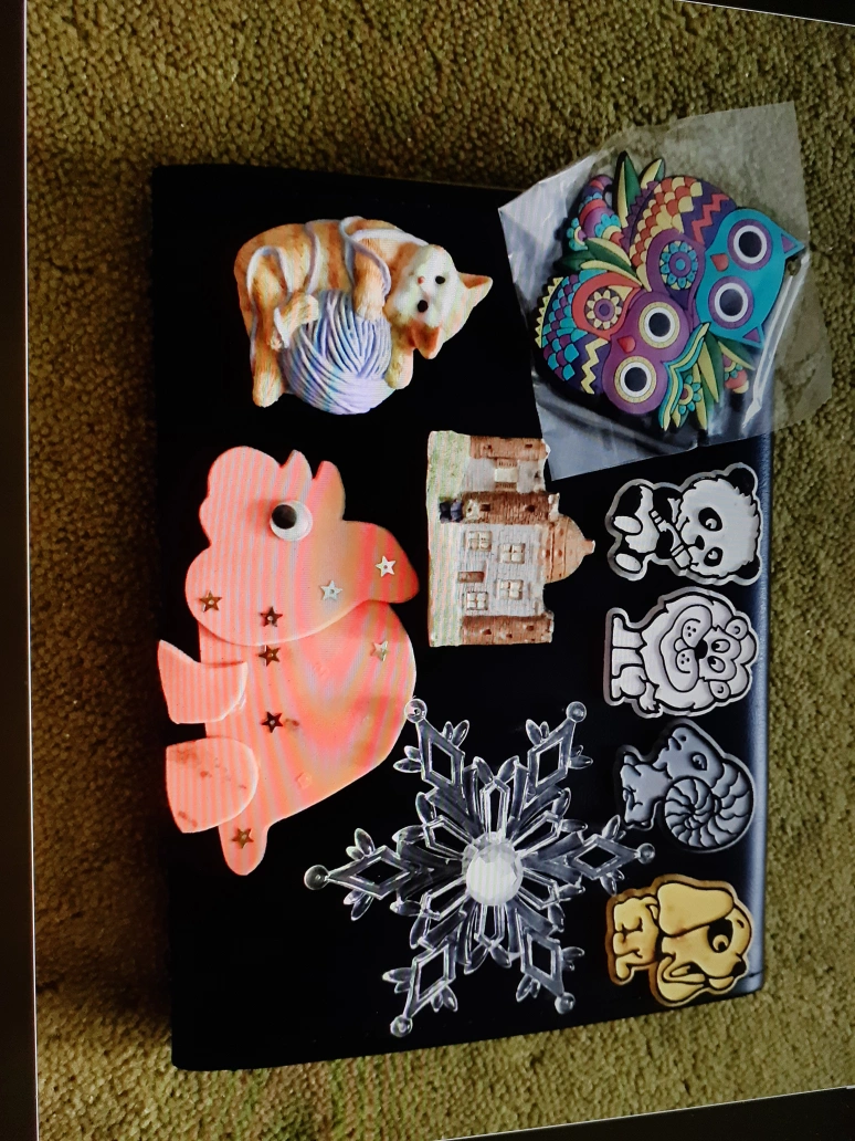 Available! A collection of fun and quirky fridge magnets! Includes a cat playing with yarn, a colourful owl, a snowflake, a castle and other animal designs. Cash and Pickup at Willowdale Middle school 225 Senlac rd OR North York center station/ Empress Walk. 👉If you are unable to pickup at my locations, pls don't msg me.