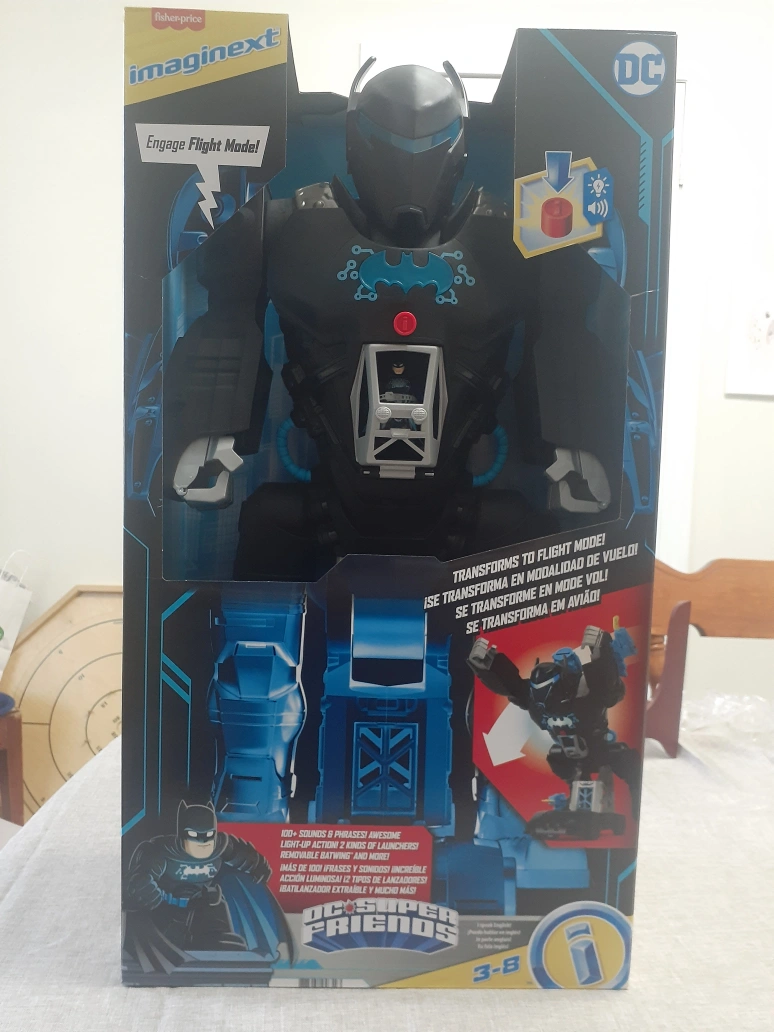 Selling a brand new Imaginext DC Super Friends Bat-Tech Batbot! It transforms to flight mode and is ready for flight. It has 100+ sounds and phrased awesome light-up action and 2 kinds of launchers. Recommended for ages 3-8