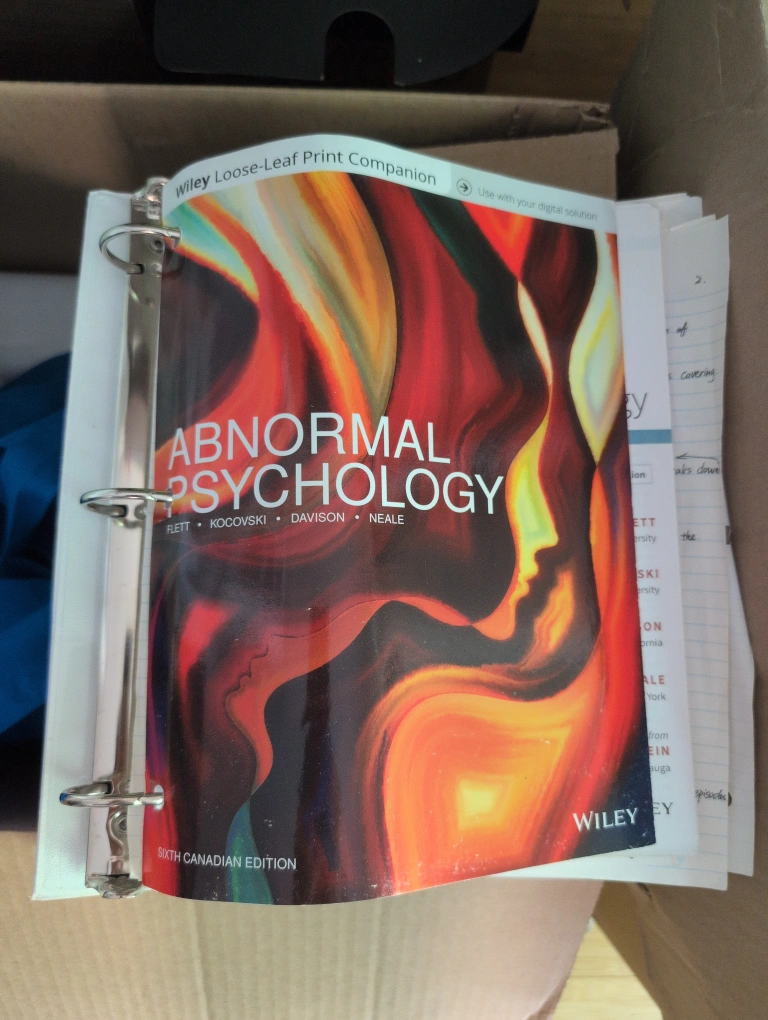 Selling a copy of "Abnormal Psychology" (Sixth Canadian Edition) by Flett, Kocovski, Davison and Neale. It's a Wiley Loose-Leaf Print Companion, perfect for your digital solutions as well Address: Unionville; porch pick-up only.