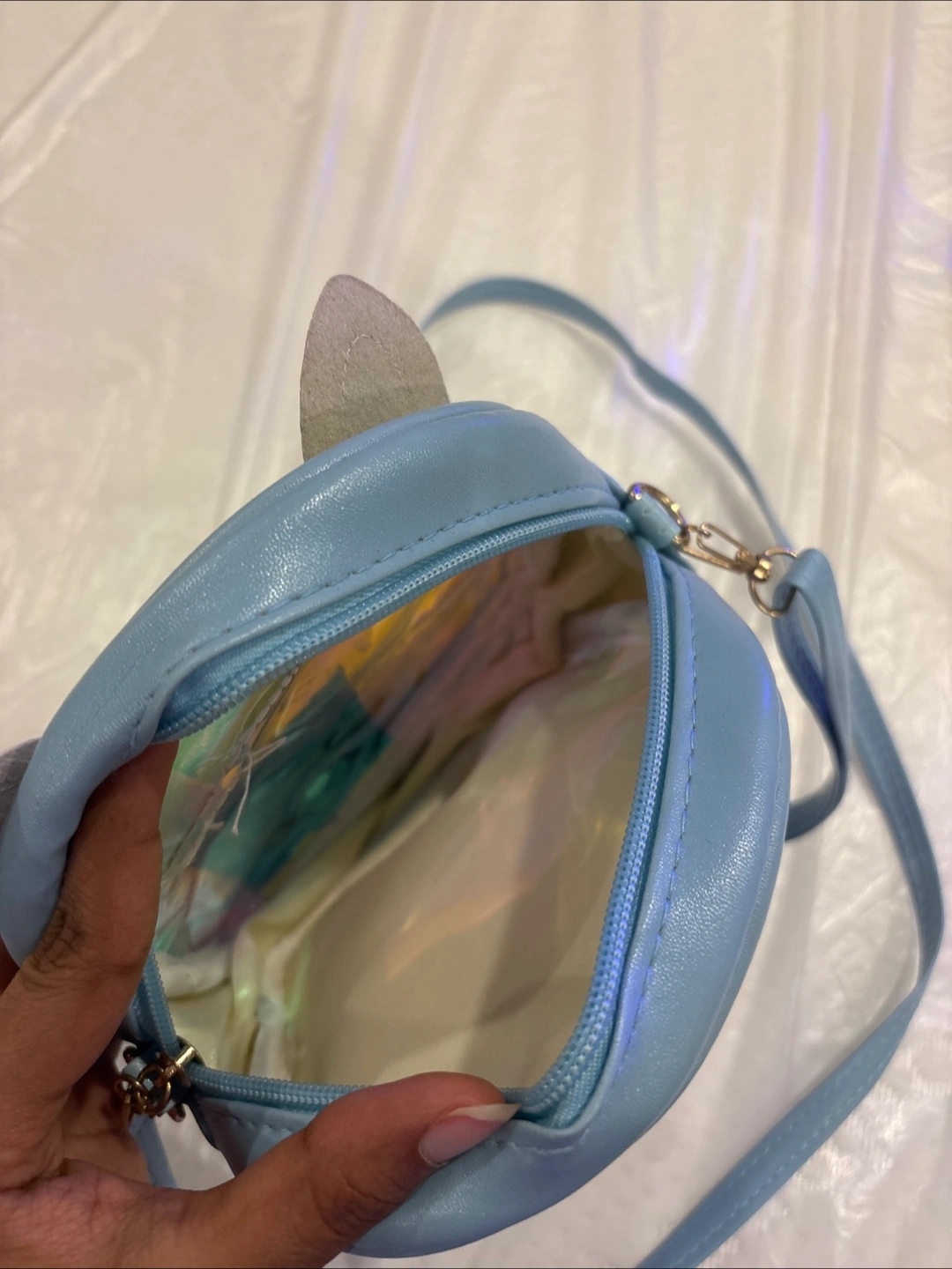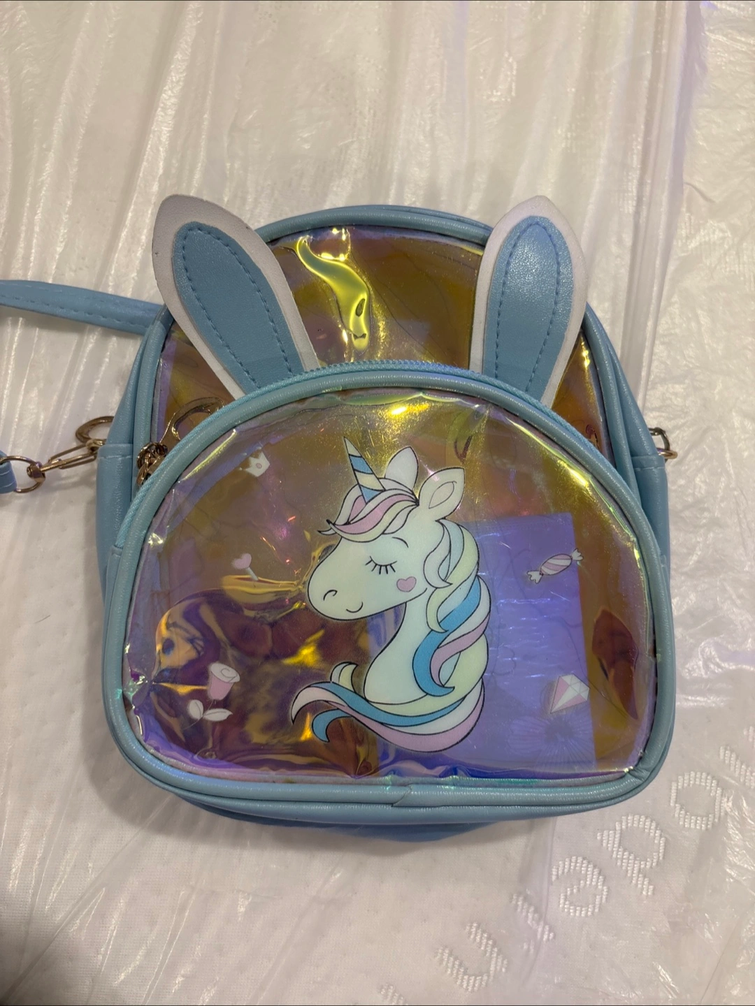Super cute blue mini backpack featuring a unicorn design! It's perfect for carrying small items and adding a touch of whimsy to any outfit