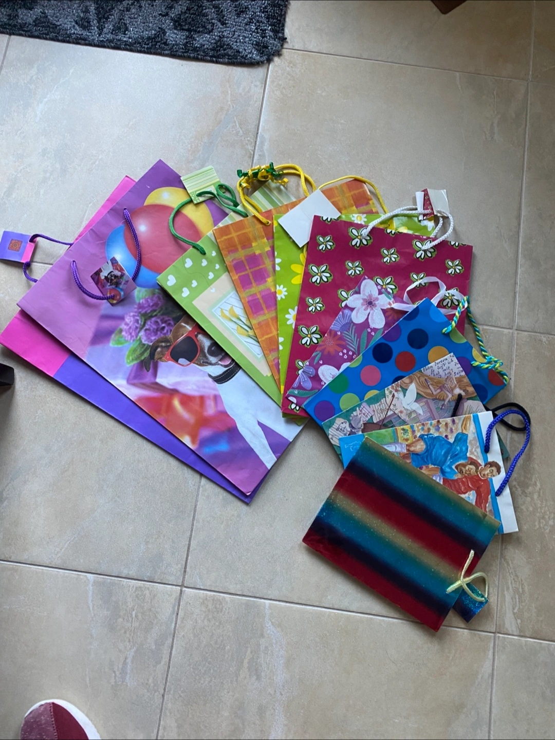A collection of 10 assorted gift bags in various sizes and designs! Perfect for birthdays, holidays, or any special occasion.